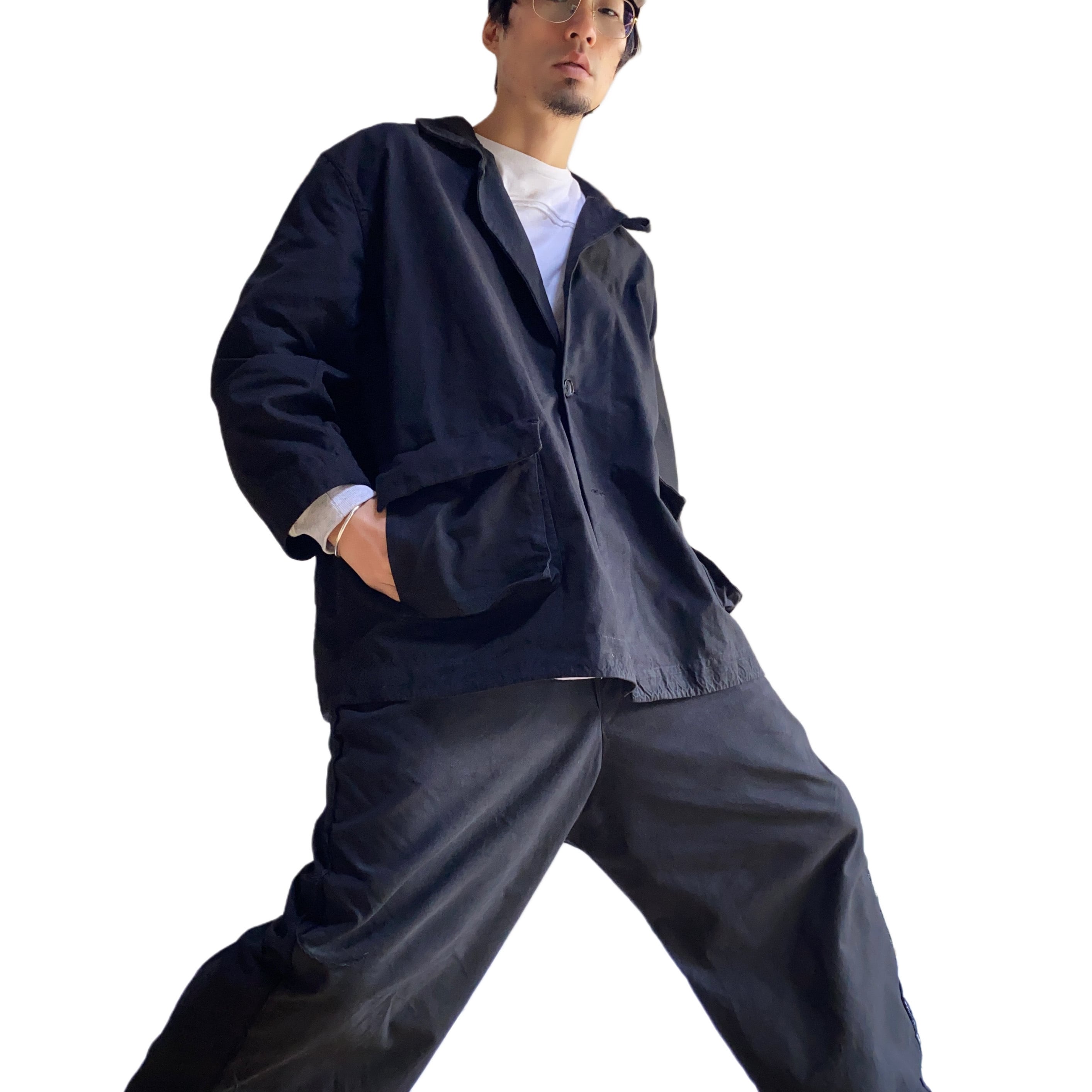 (本品は古い素材に洗いをかけて製作。経年変化は、服の魅力の一部として仕立てています。)