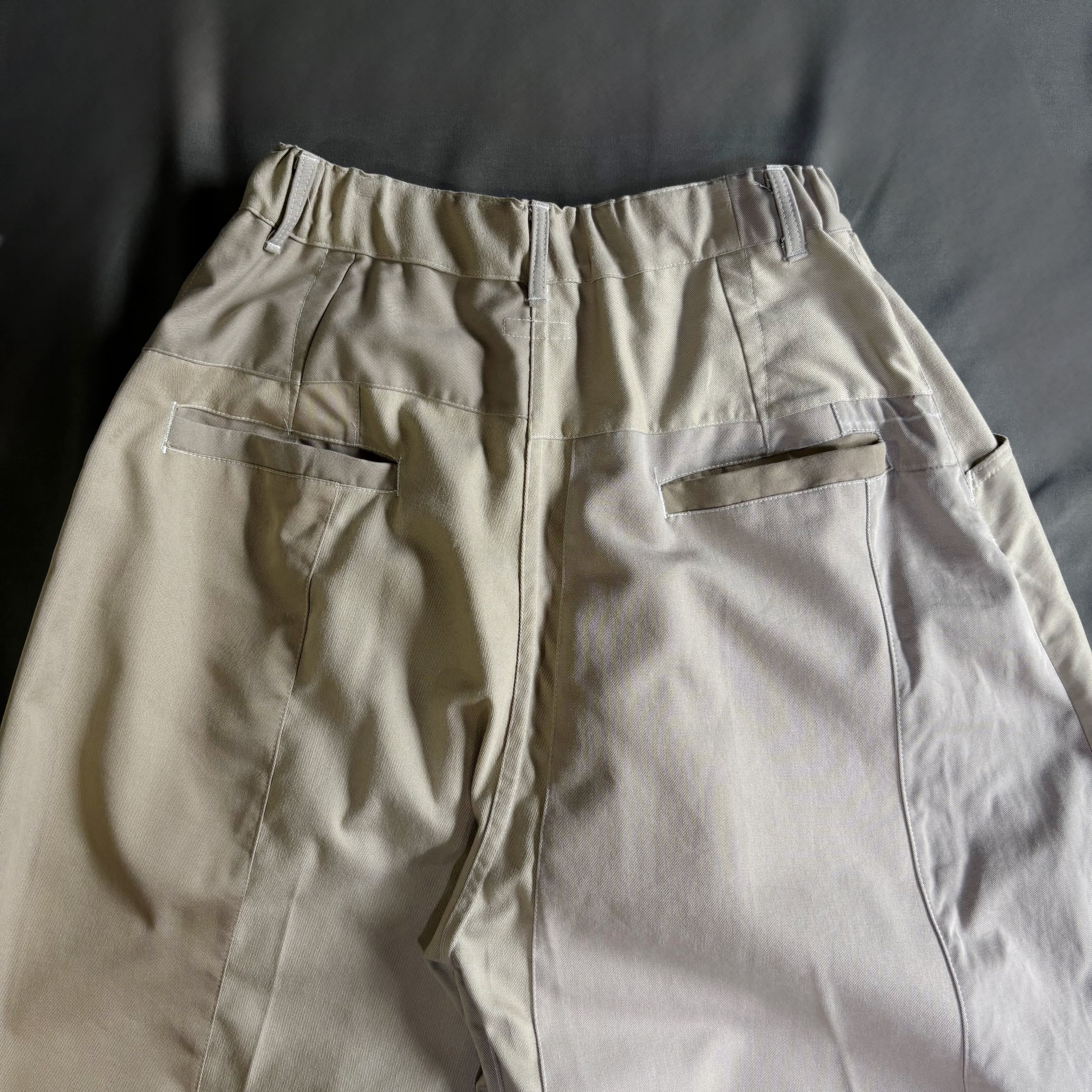 ウエストはゴム仕様、ベルトループ付き。丈詰めも承ります。