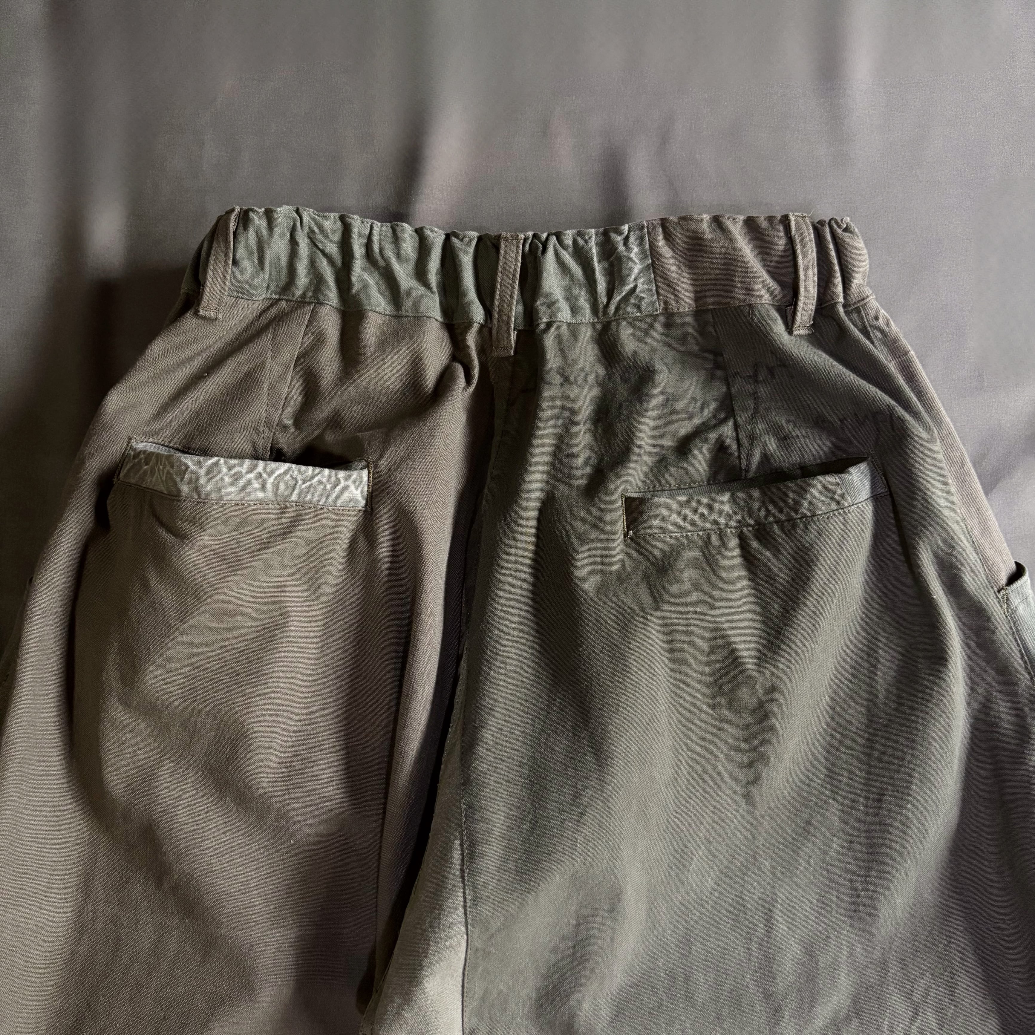 ウエストはゴム仕様、ベルトループ付き。丈詰めも承ります。