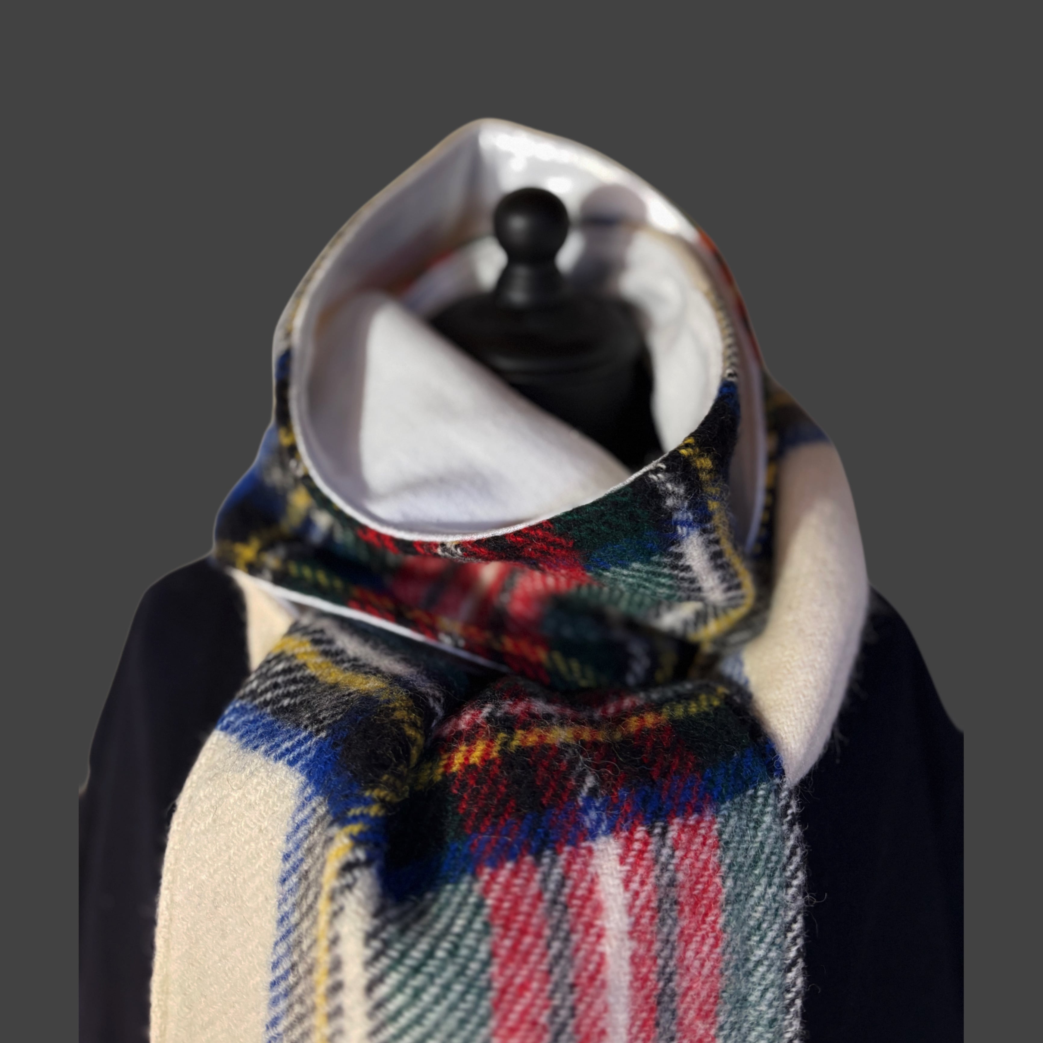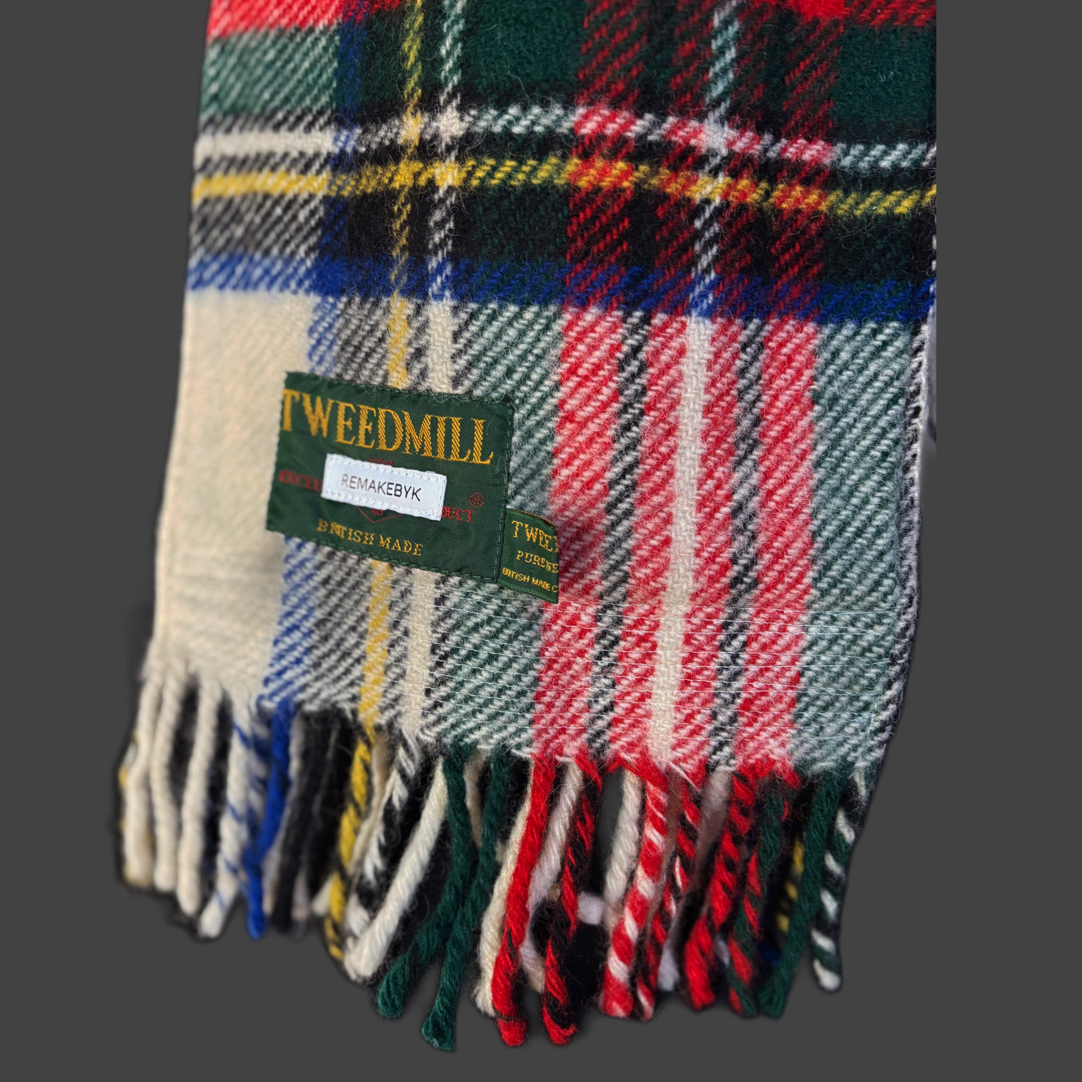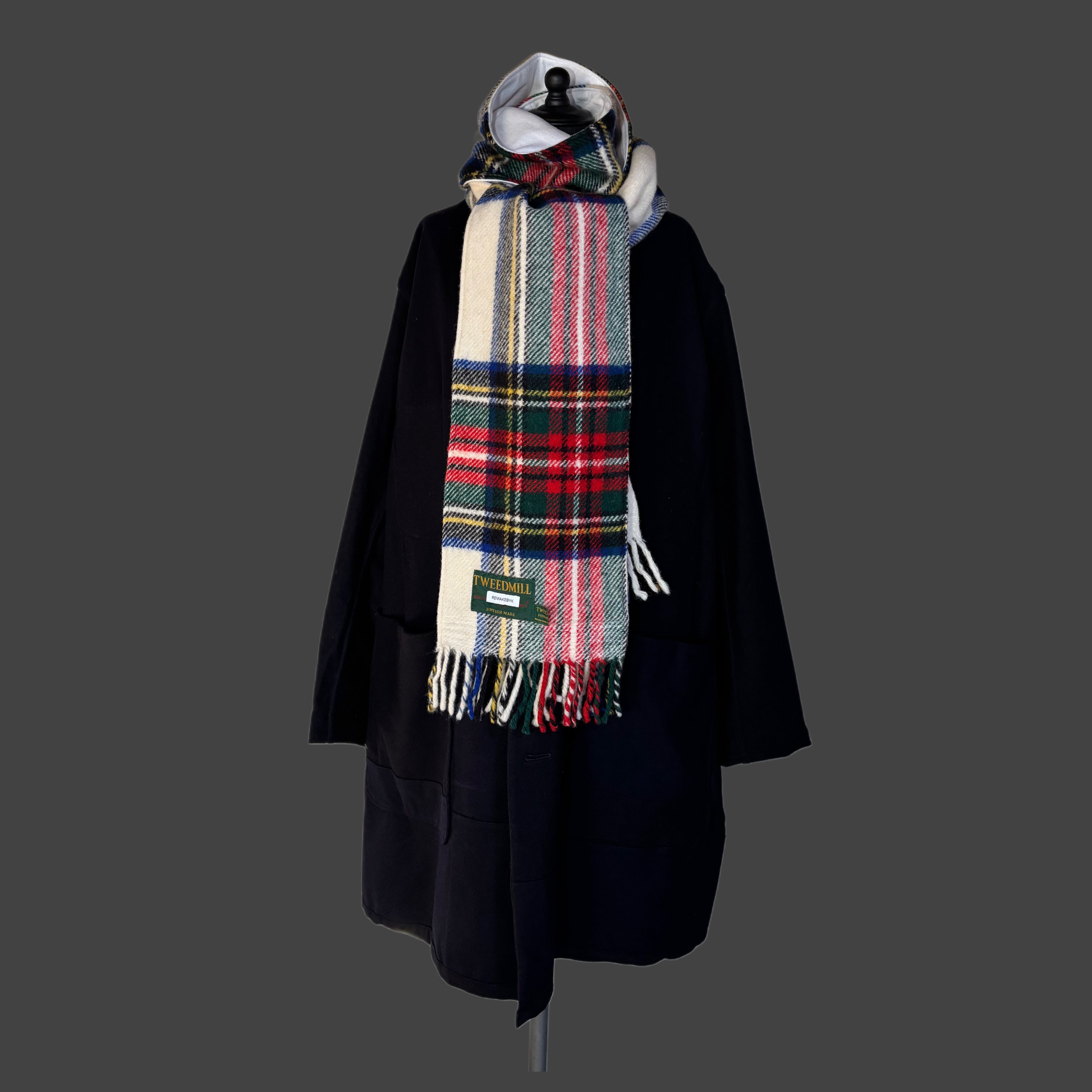表に重厚なタータン、裏に90年代のスウェットを使用。