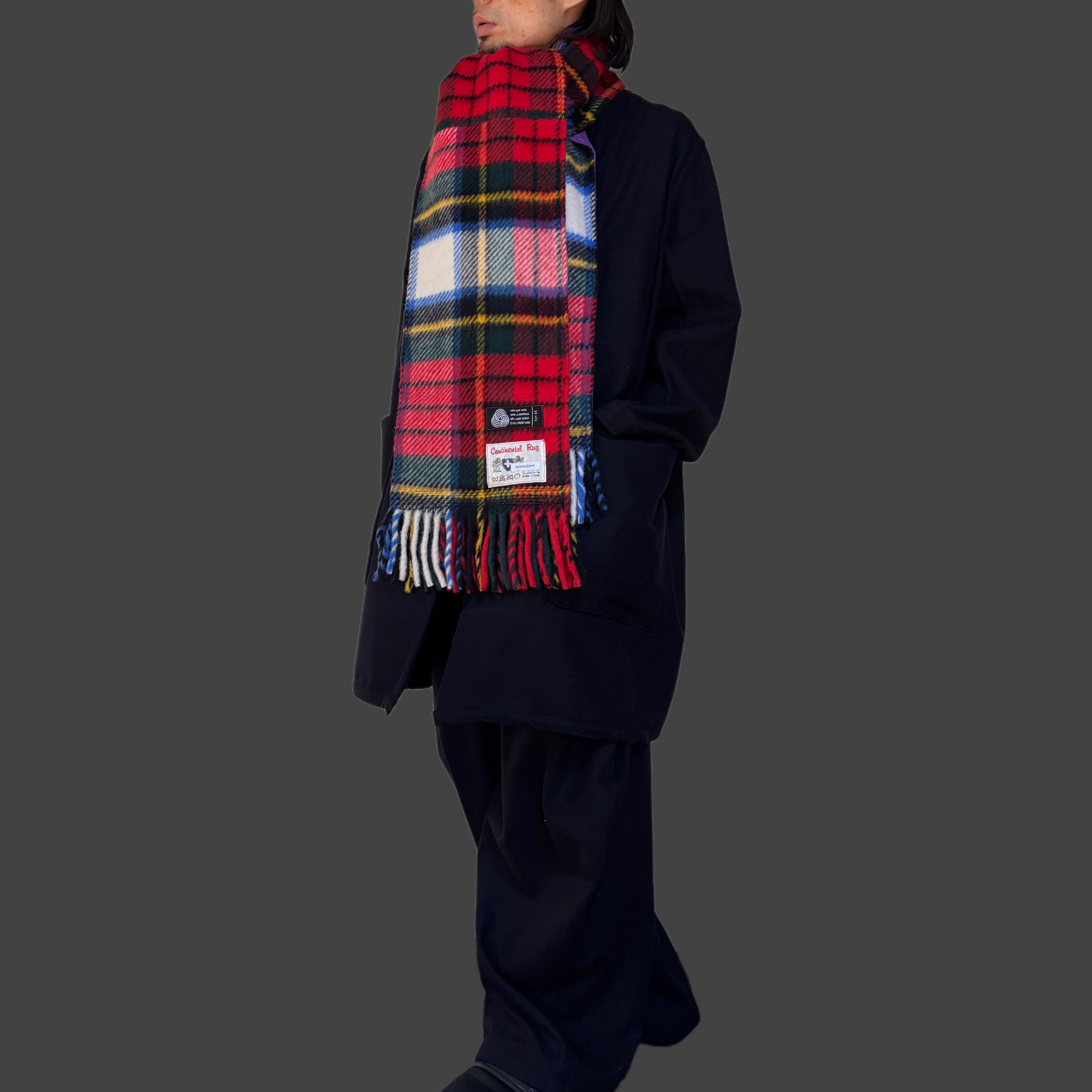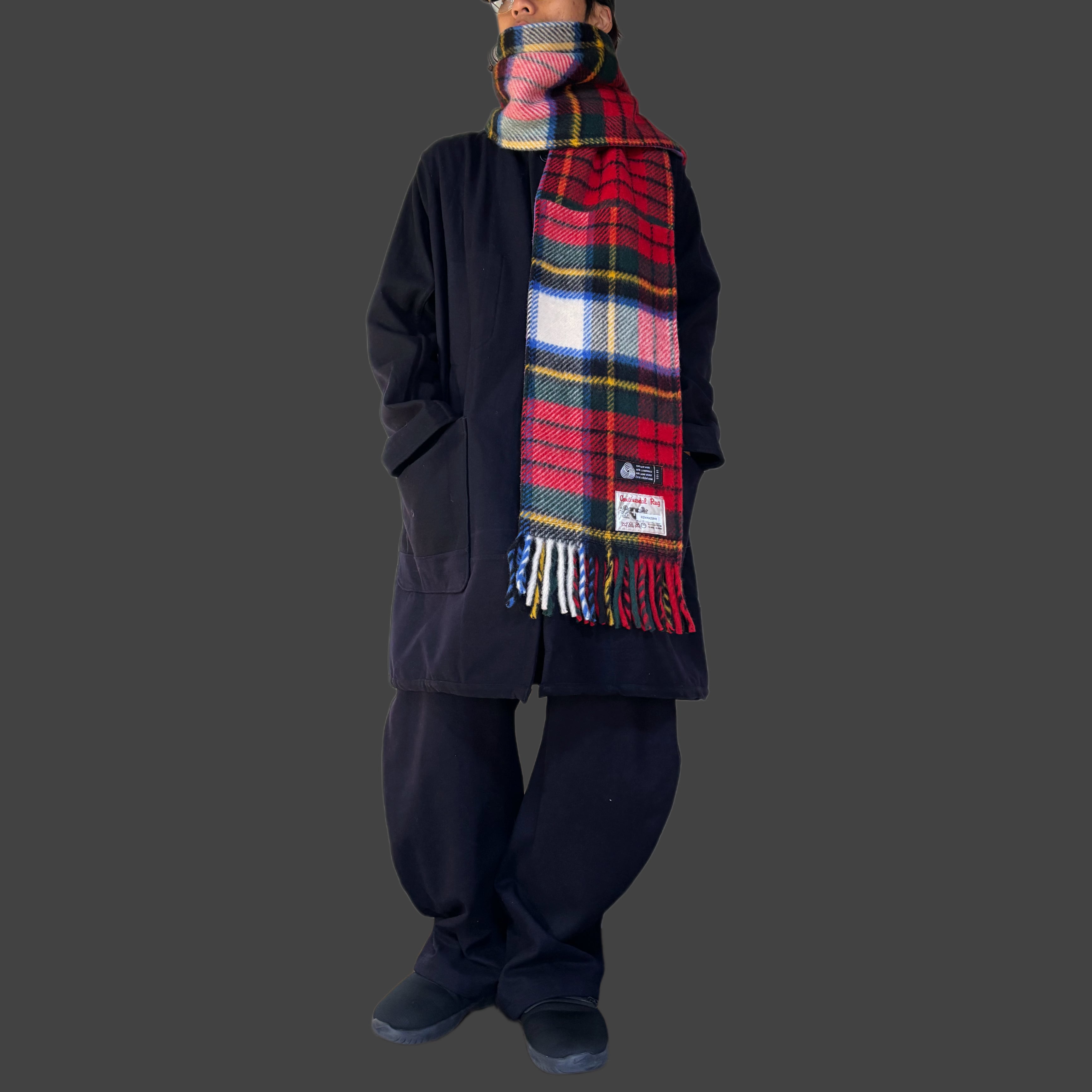 表に重厚なタータン、裏に90年代のスウェットを使用。