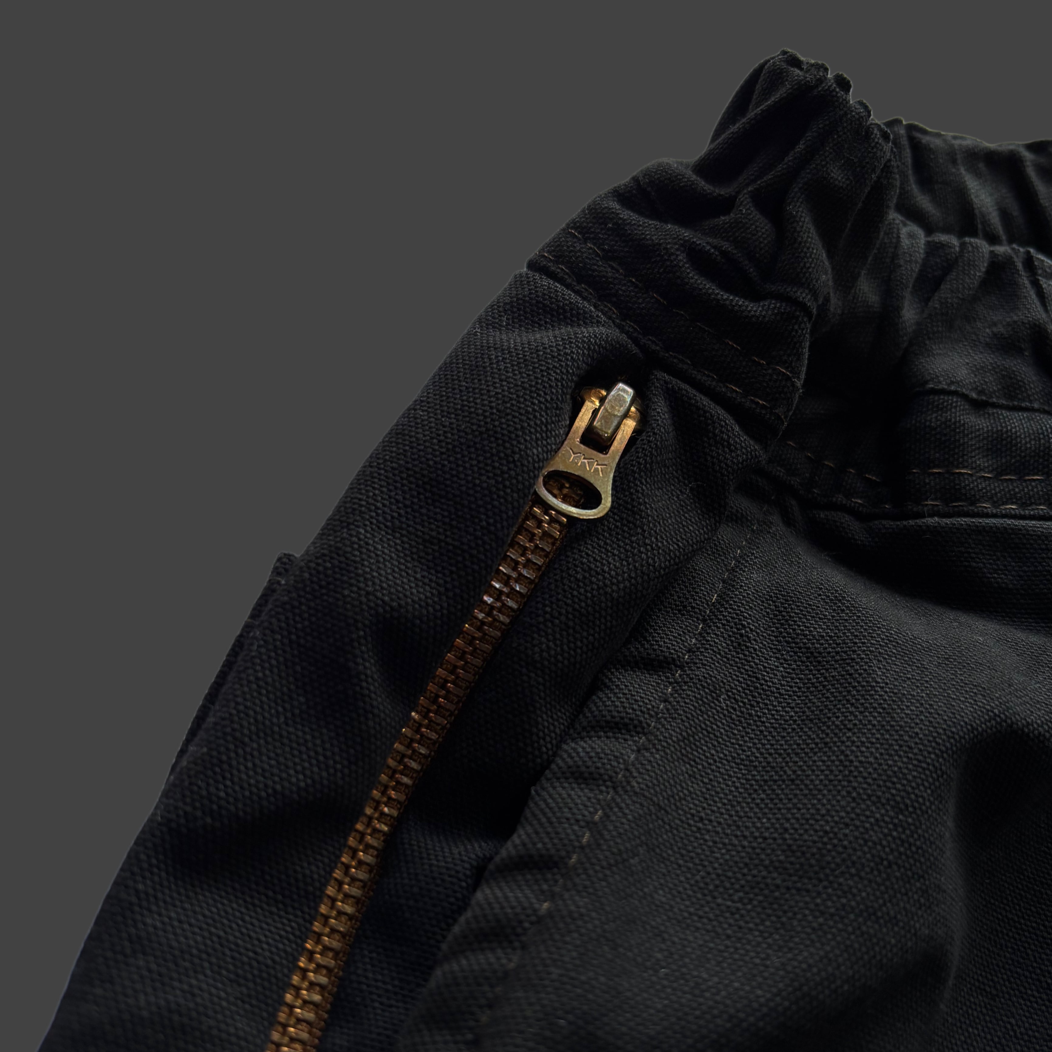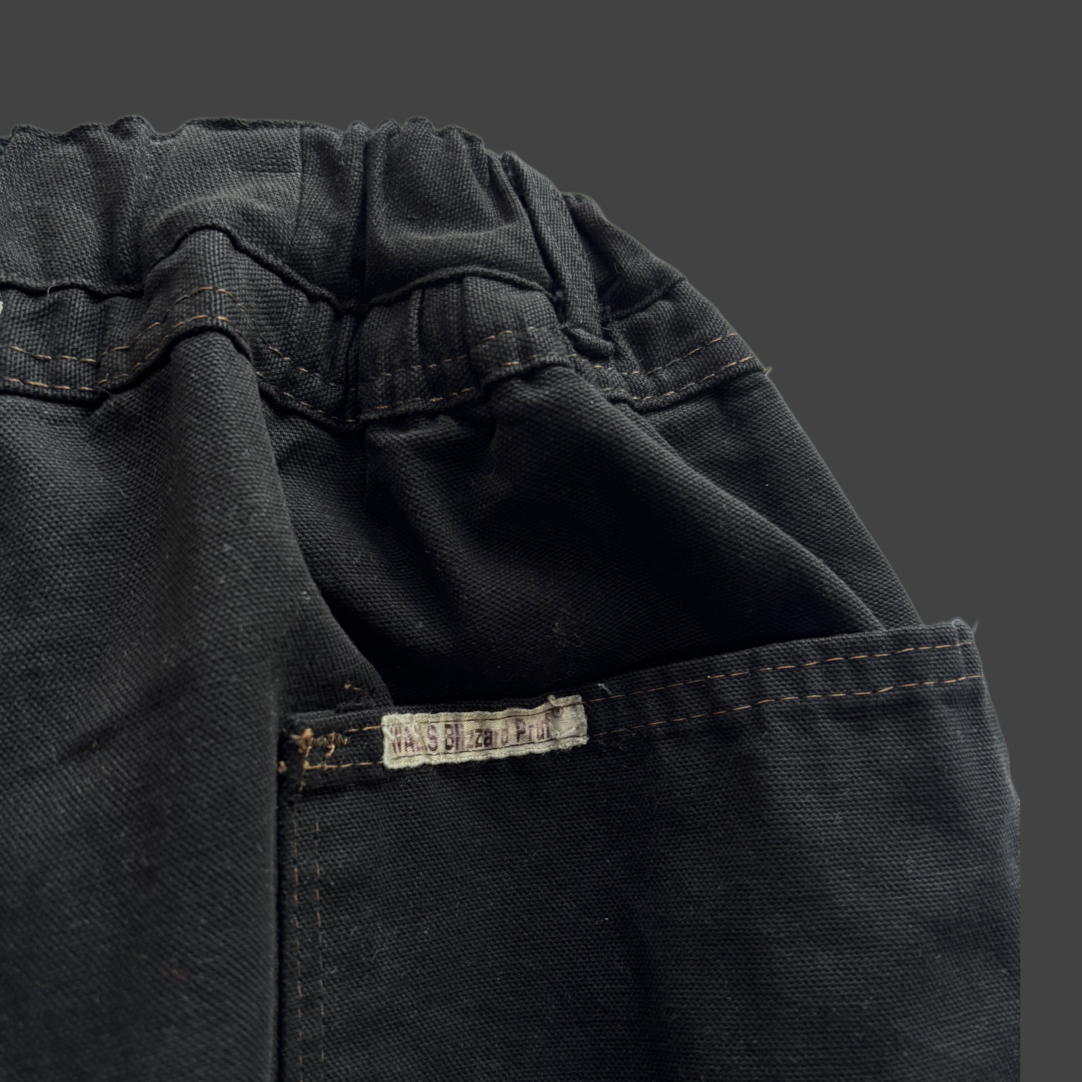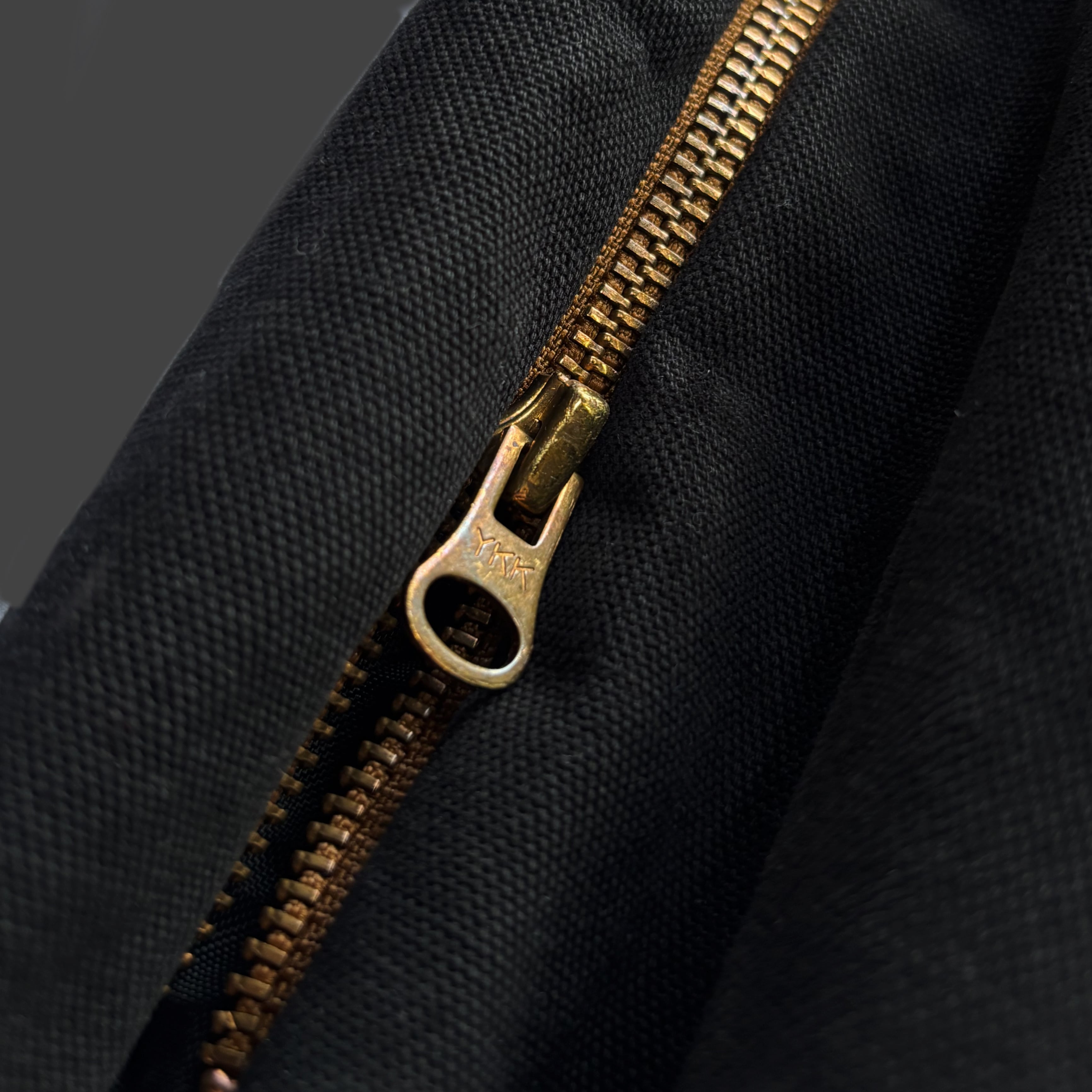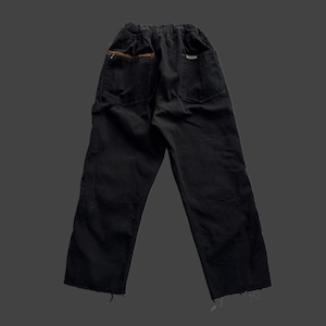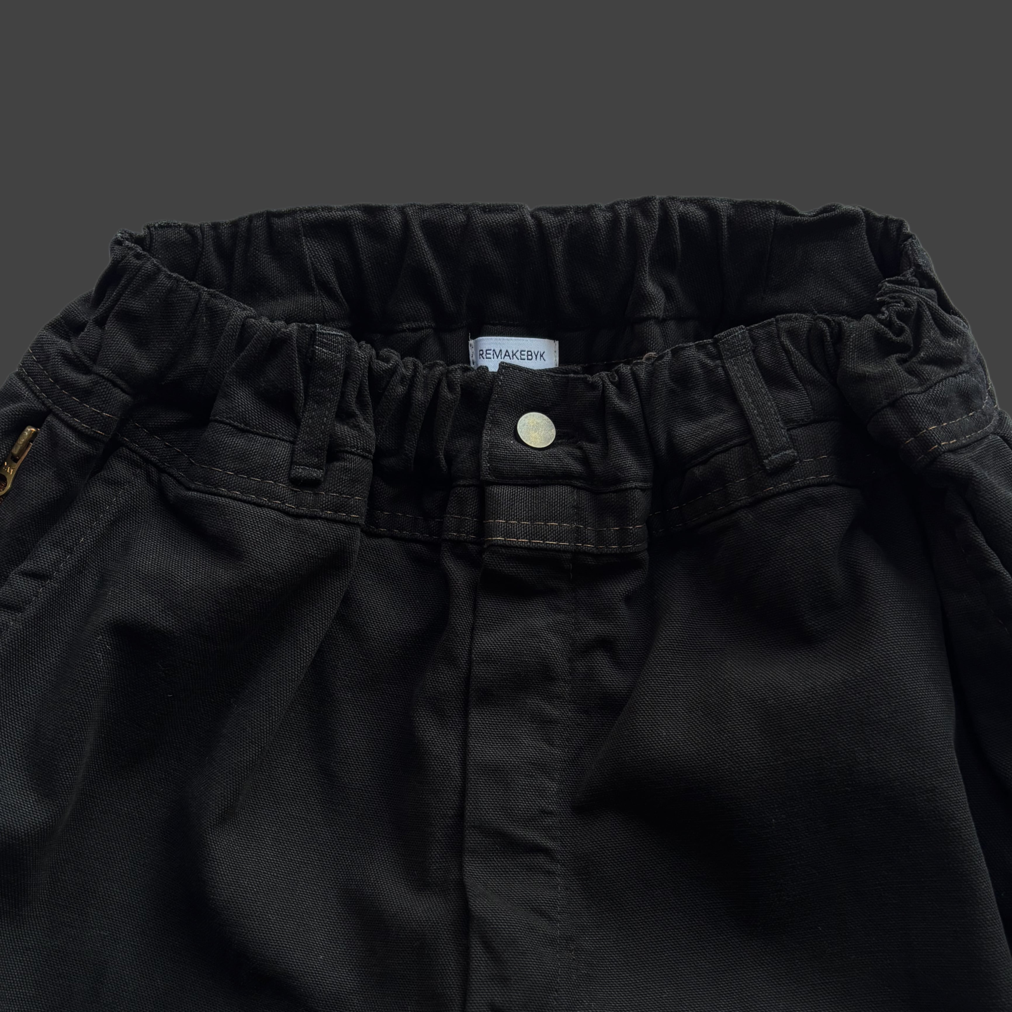 Deconstructed from vintage duck overalls, reconstructed, and overdyed black.