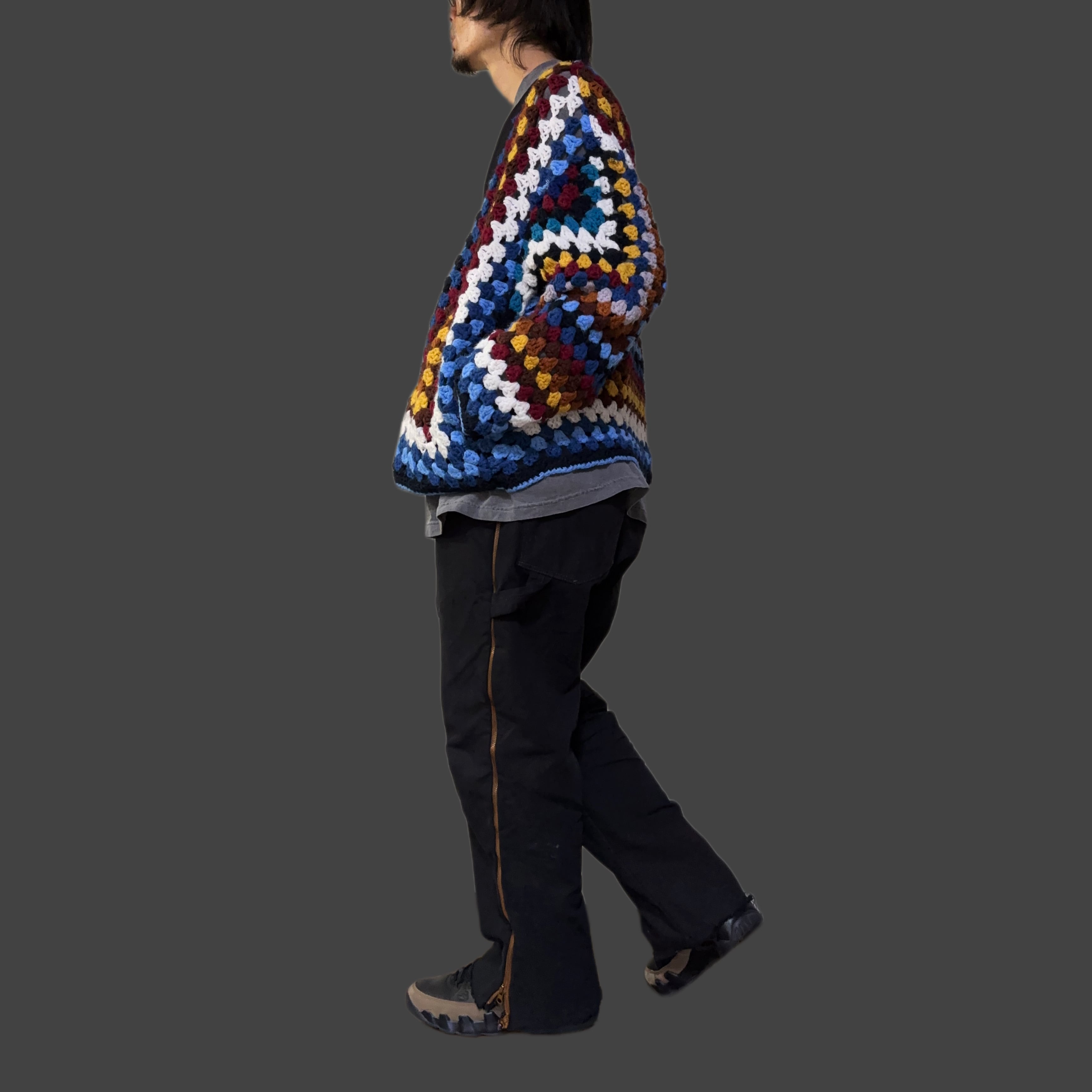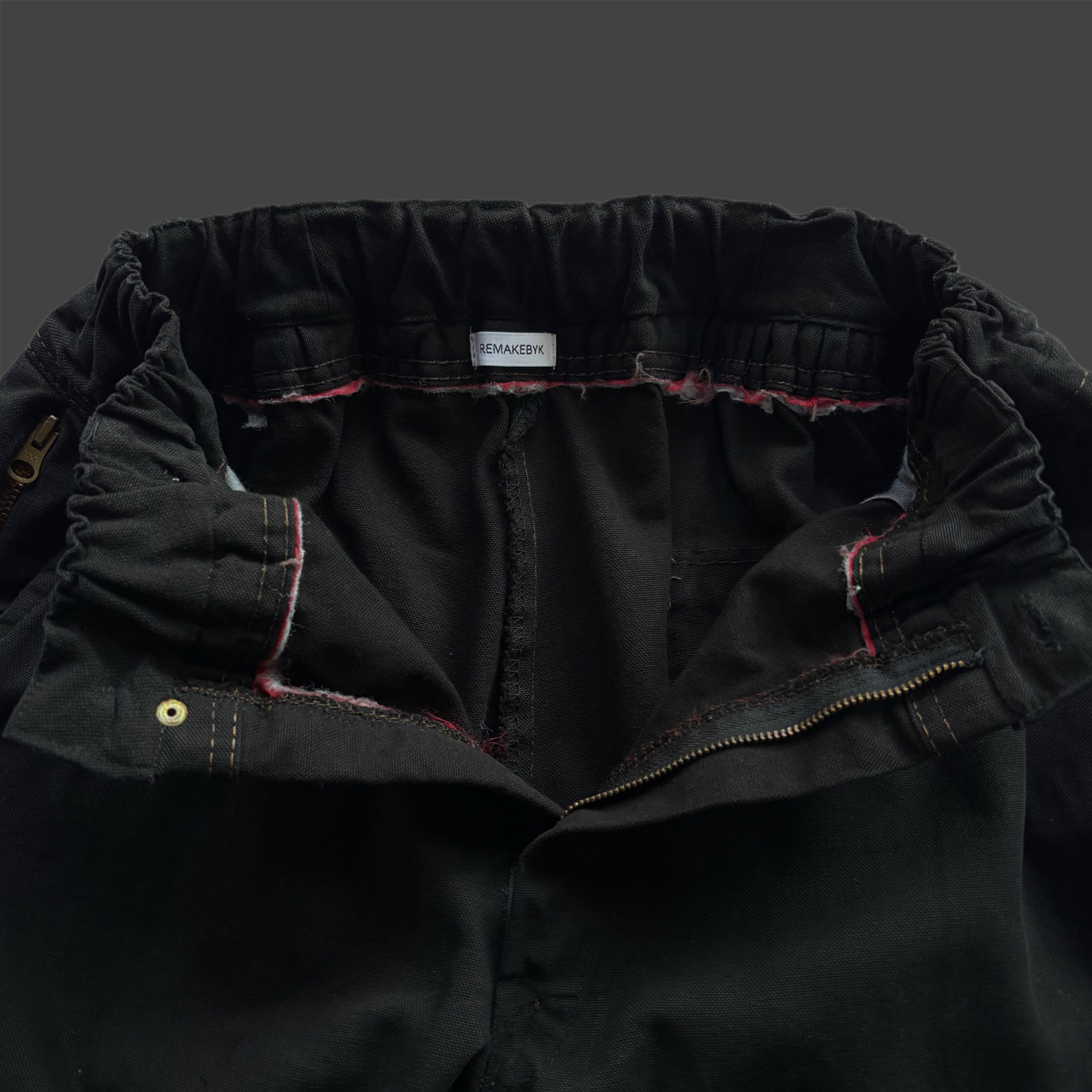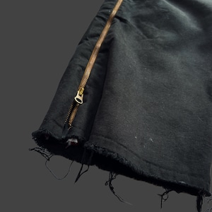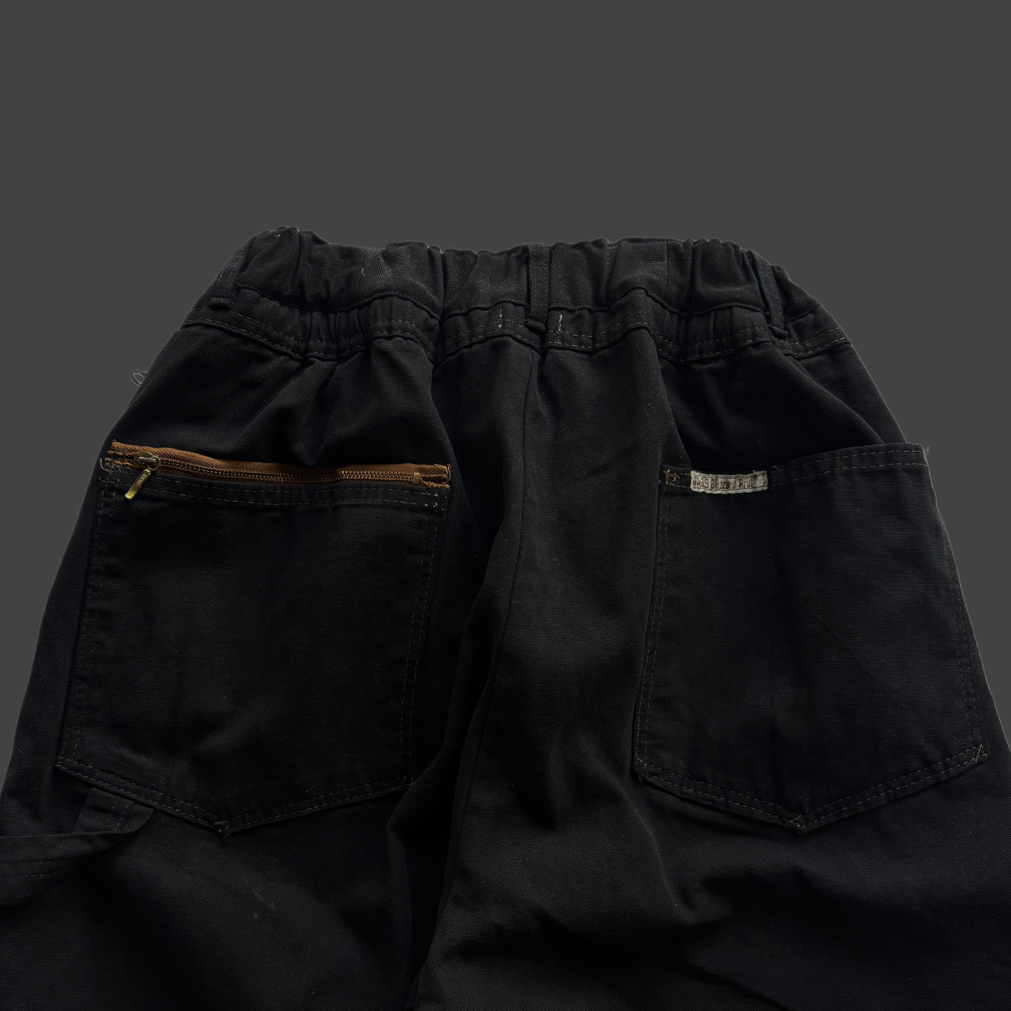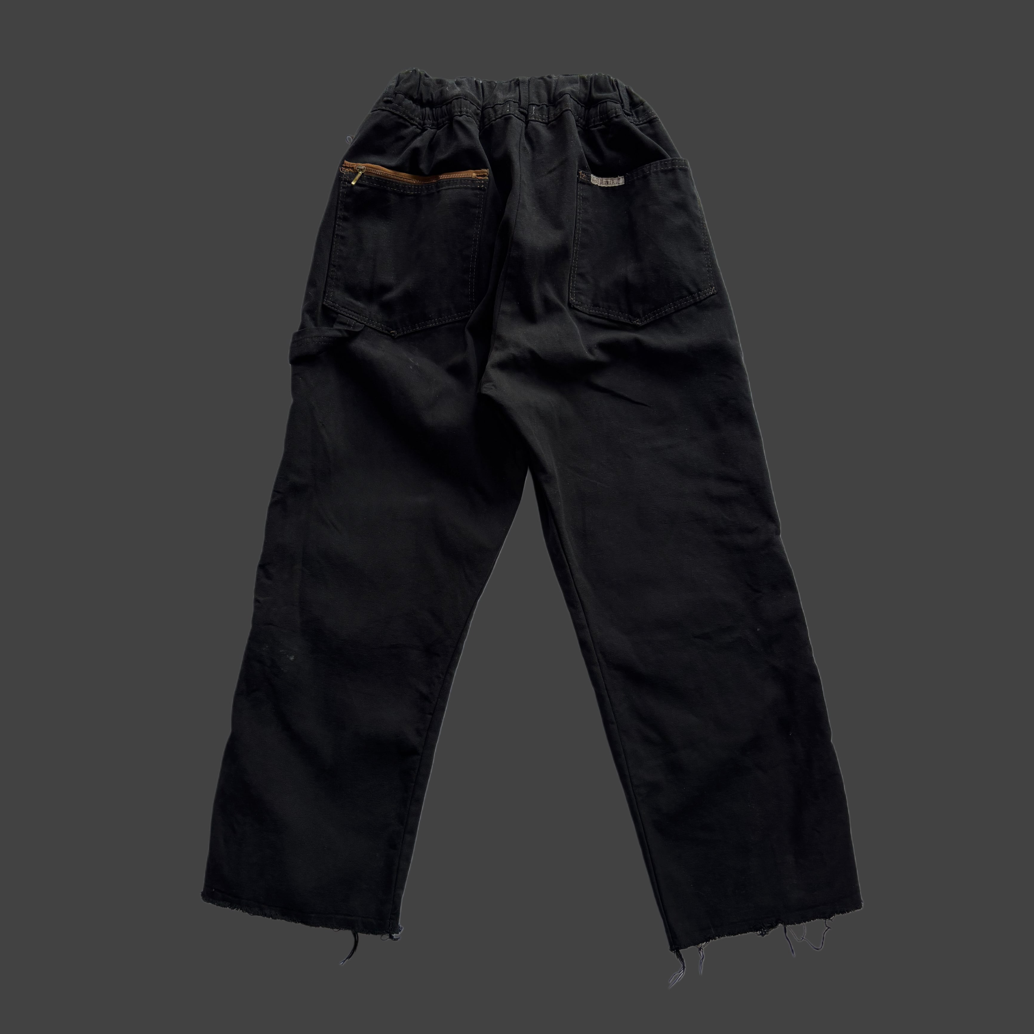 Deconstructed from vintage duck overalls, reconstructed, and overdyed black.