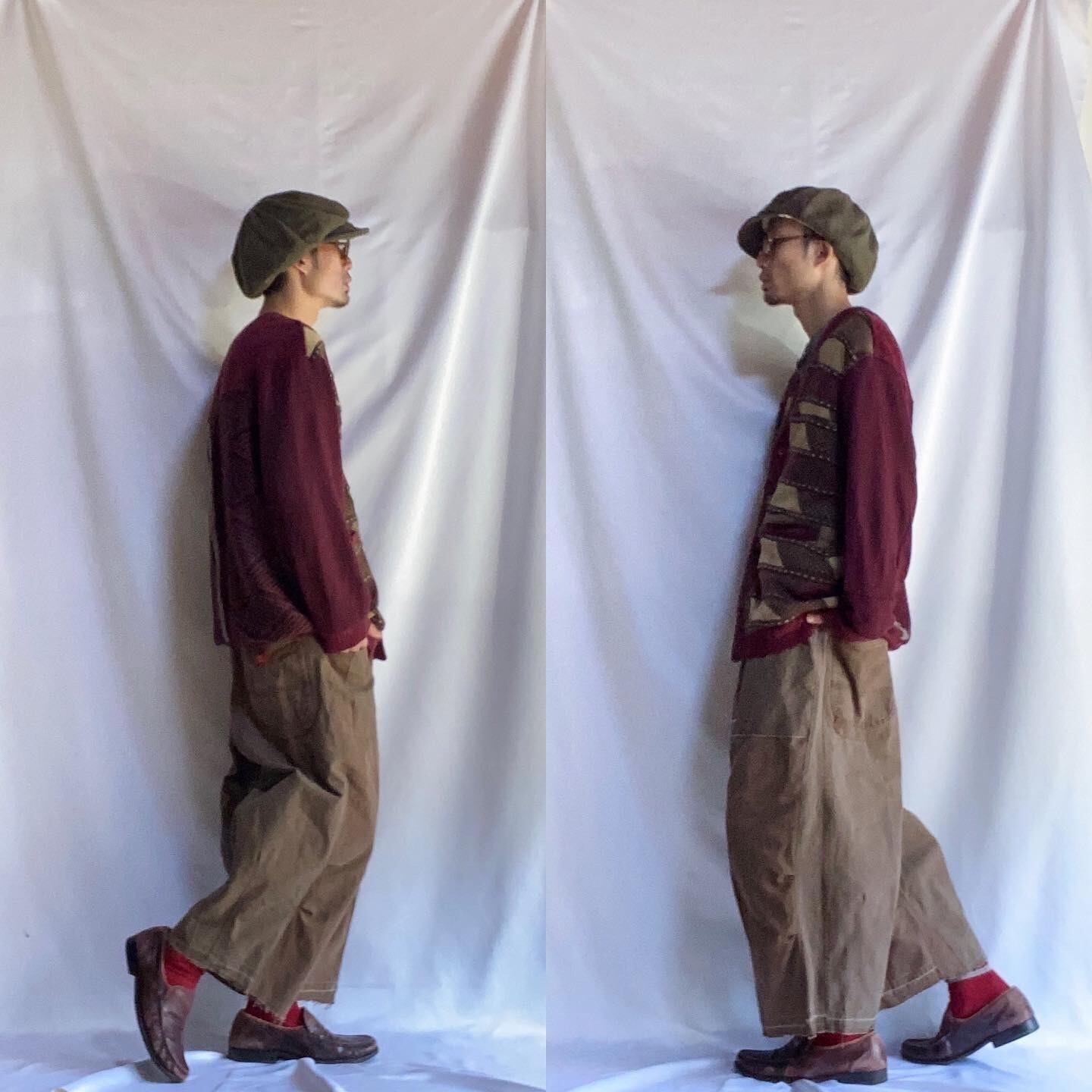 (本品は古い素材に洗いをかけて製作。経年変化は、服の魅力の一部として仕立てています。)