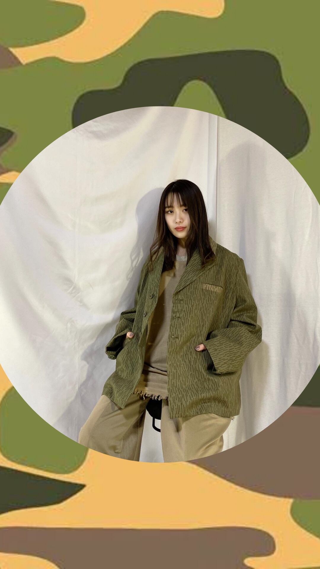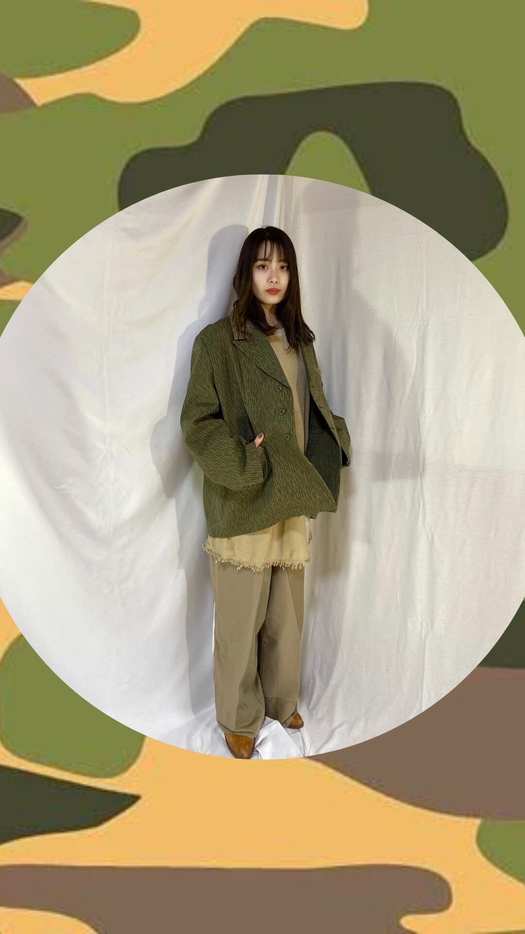 (本品は古い素材に洗いをかけて製作。経年変化は、服の魅力の一部として仕立てています。)