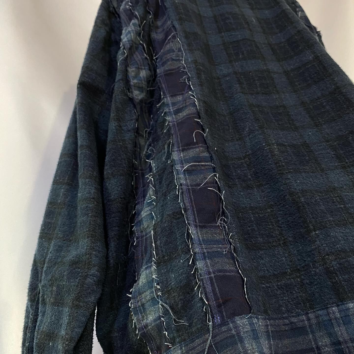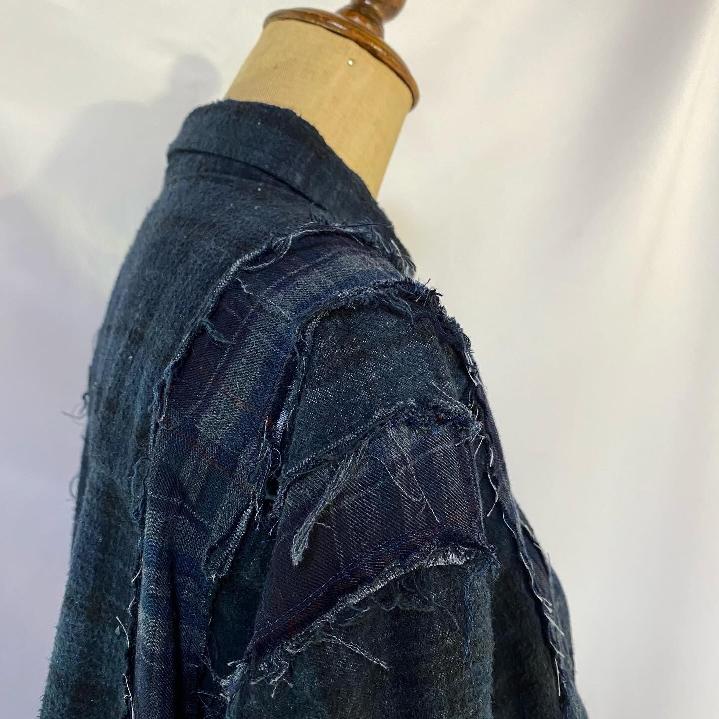 古着のネルシャツ数枚を細かく継ぎ接ぎ