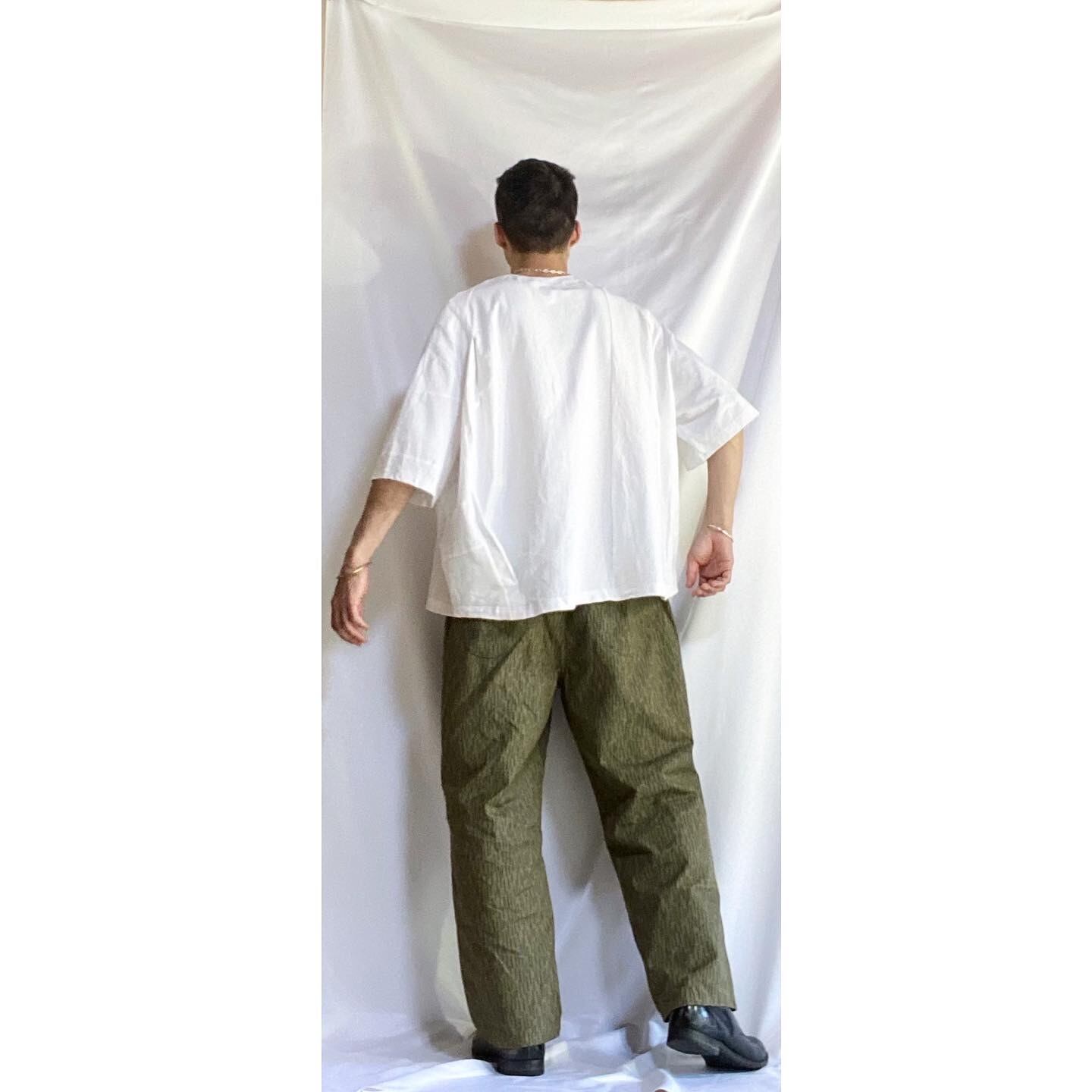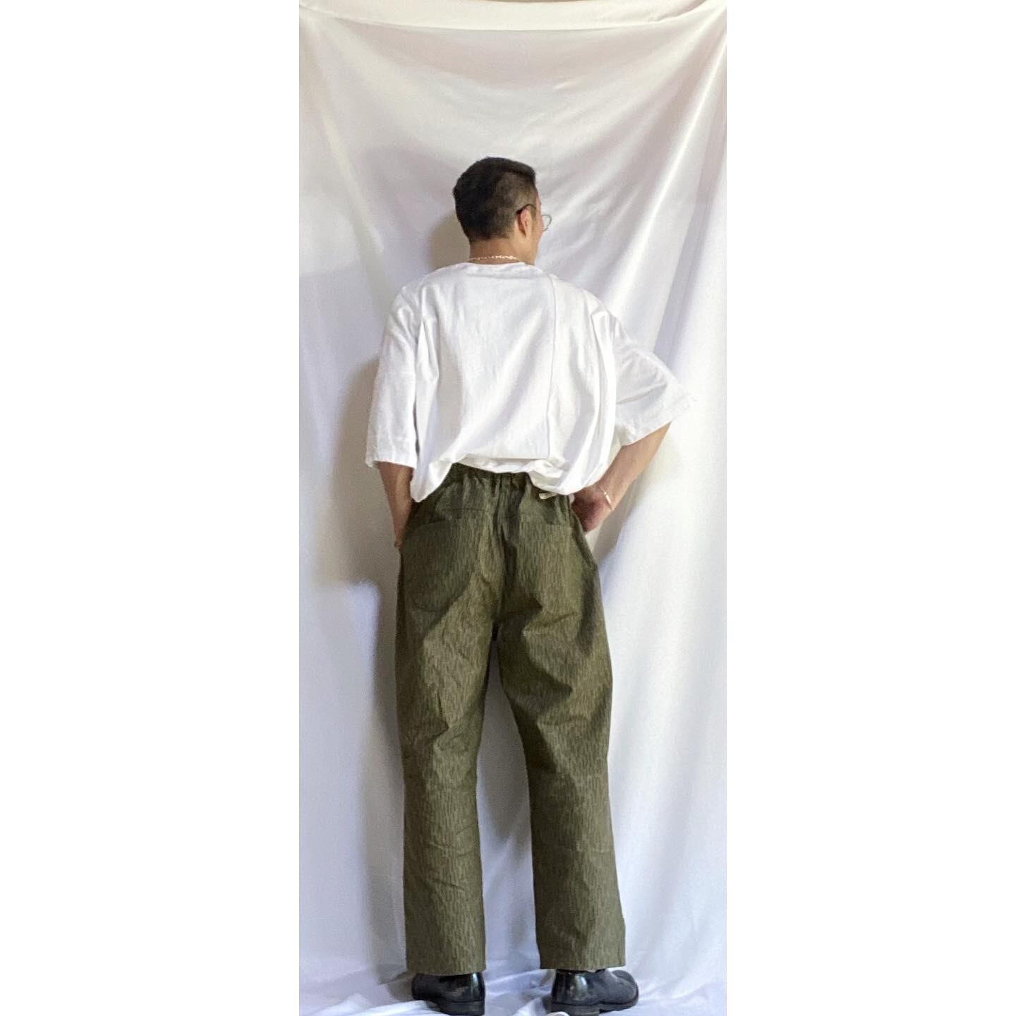 (本品は古い素材に洗いをかけて製作。経年変化は、服の魅力の一部として仕立てています。)