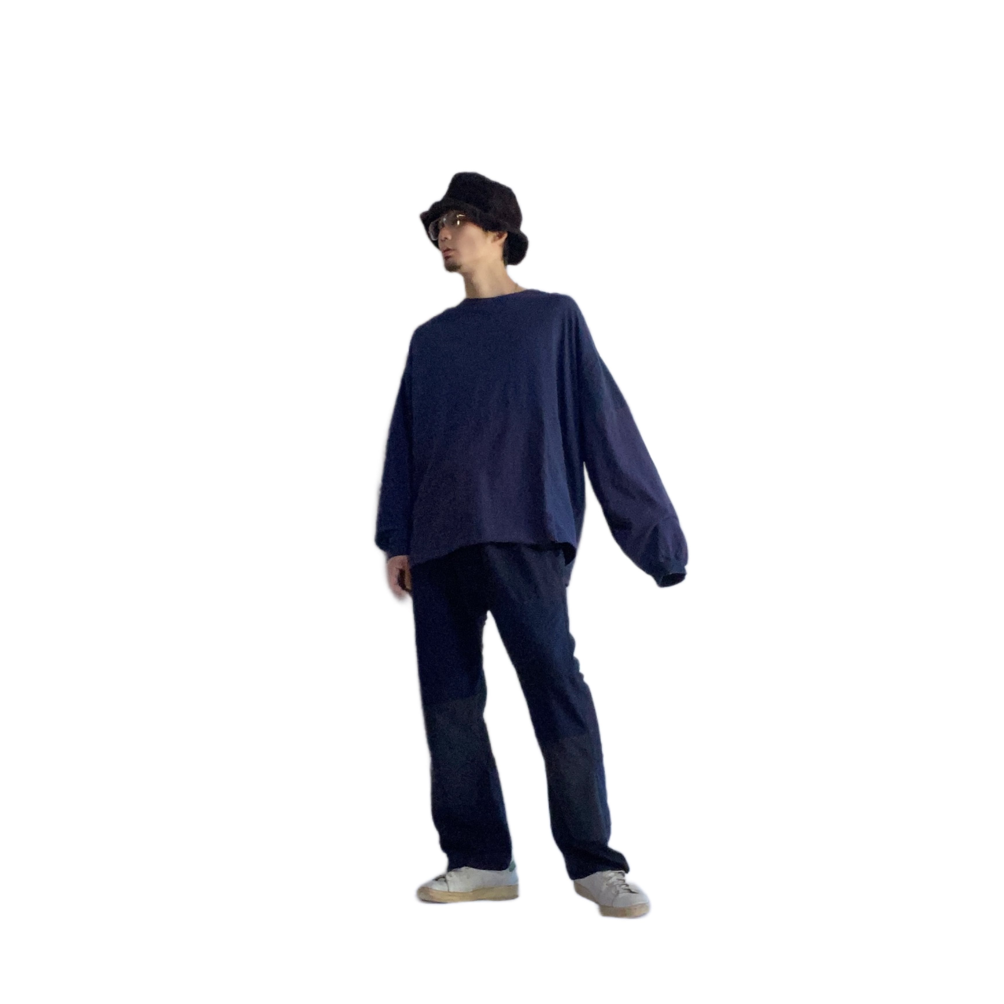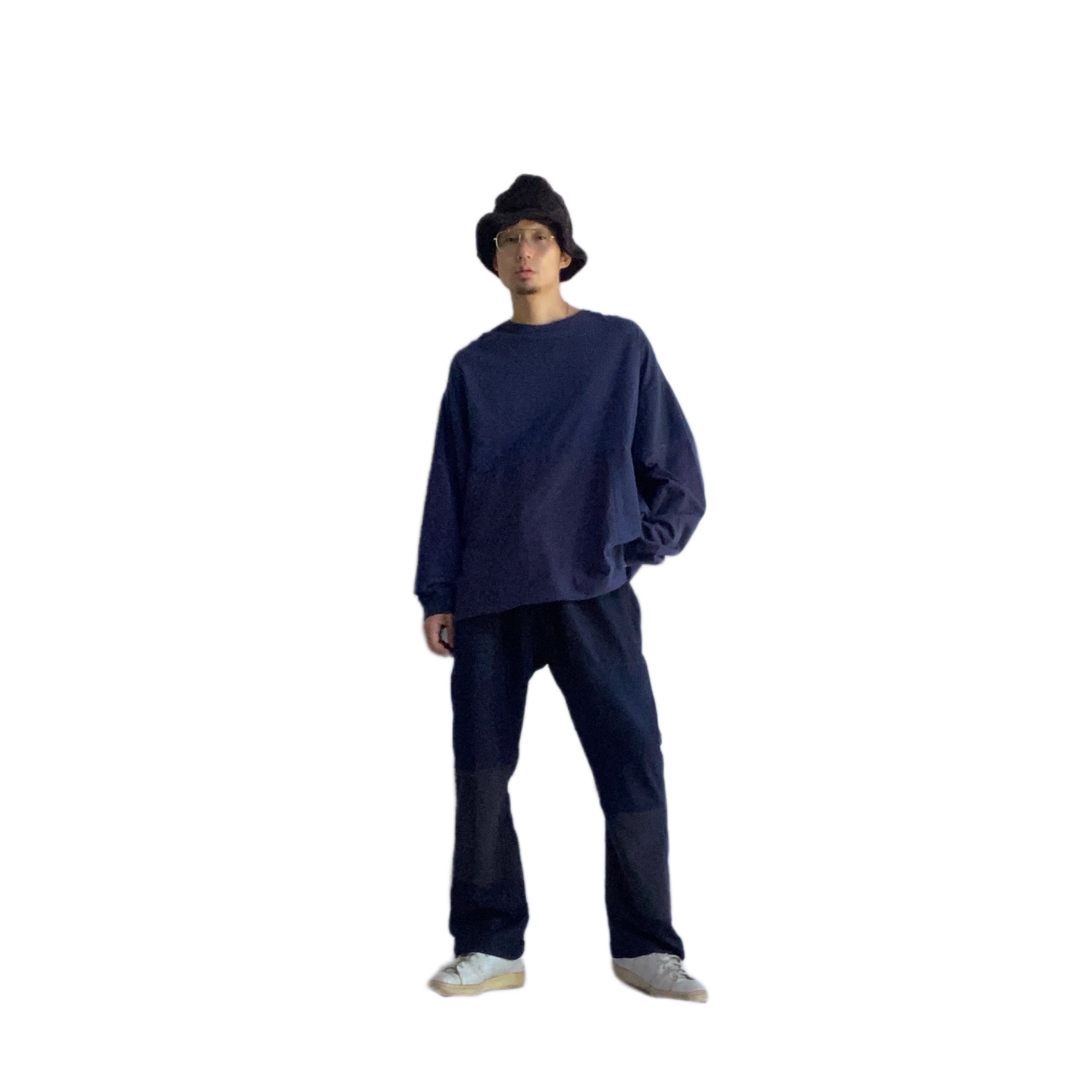 (本品は古い素材に洗いをかけて製作。経年変化は、服の魅力の一部として仕立てています。)