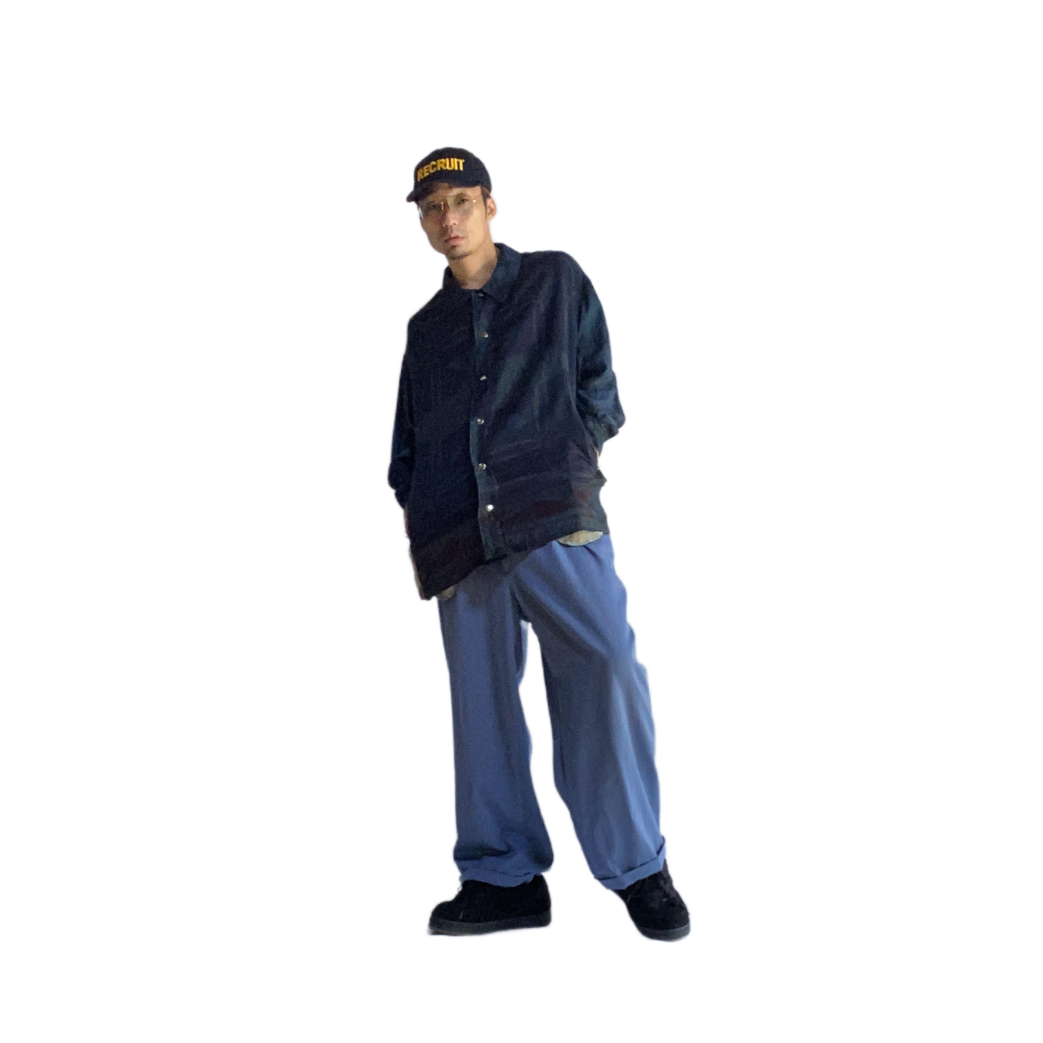 (本品は古い素材に洗いをかけて製作。経年変化は、服の魅力の一部として仕立てています。)