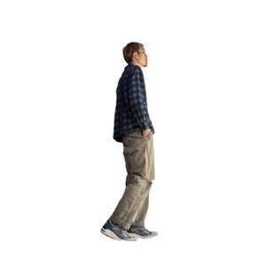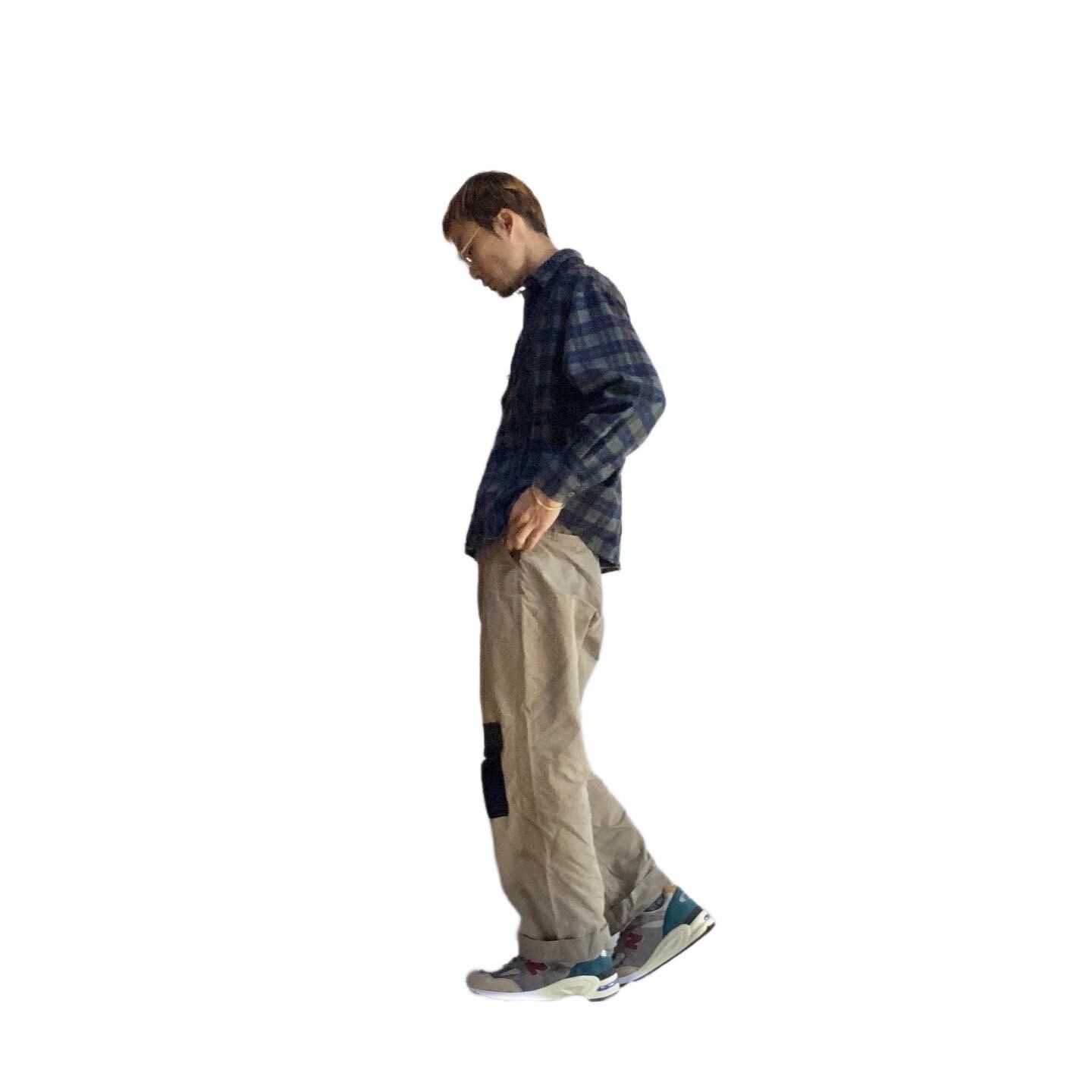 (本品は古い素材に洗いをかけて製作。経年変化は、服の魅力の一部として仕立てています。)