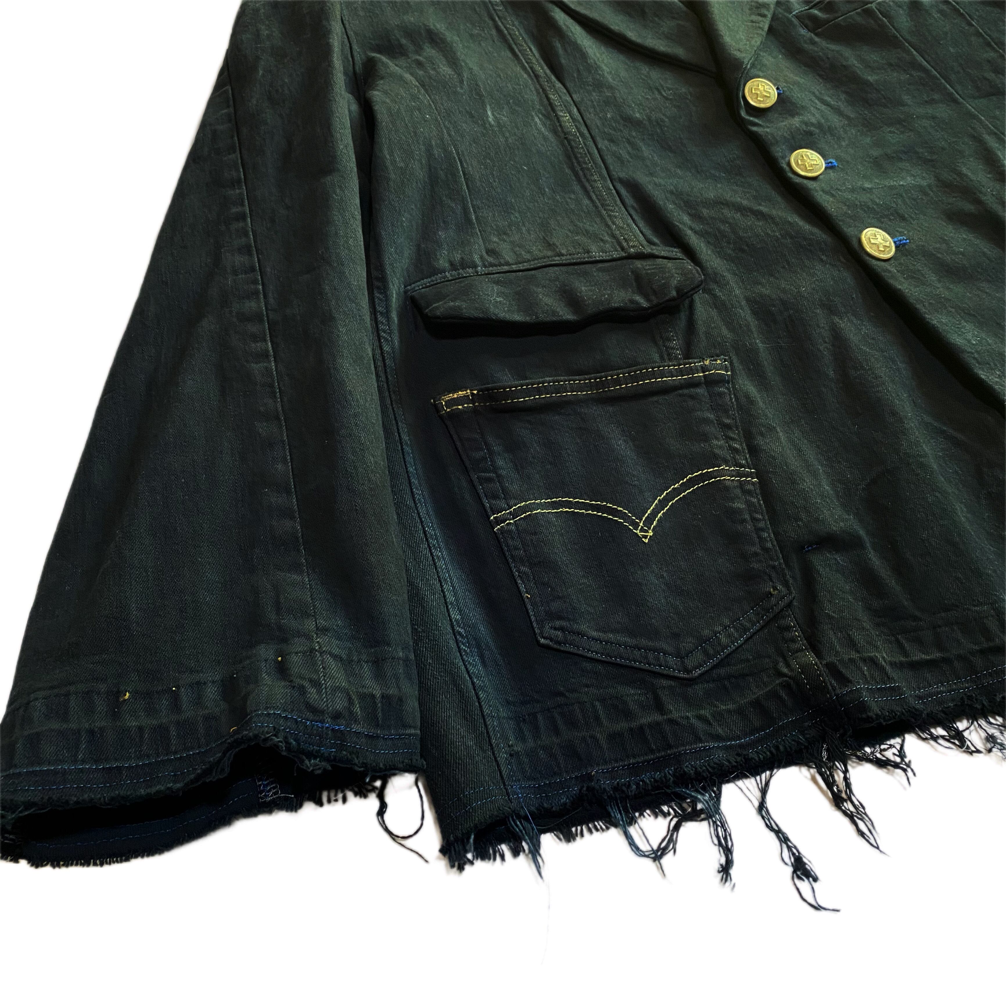 (本品は古い素材に洗いをかけて製作。経年変化は、服の魅力の一部として仕立てています。)