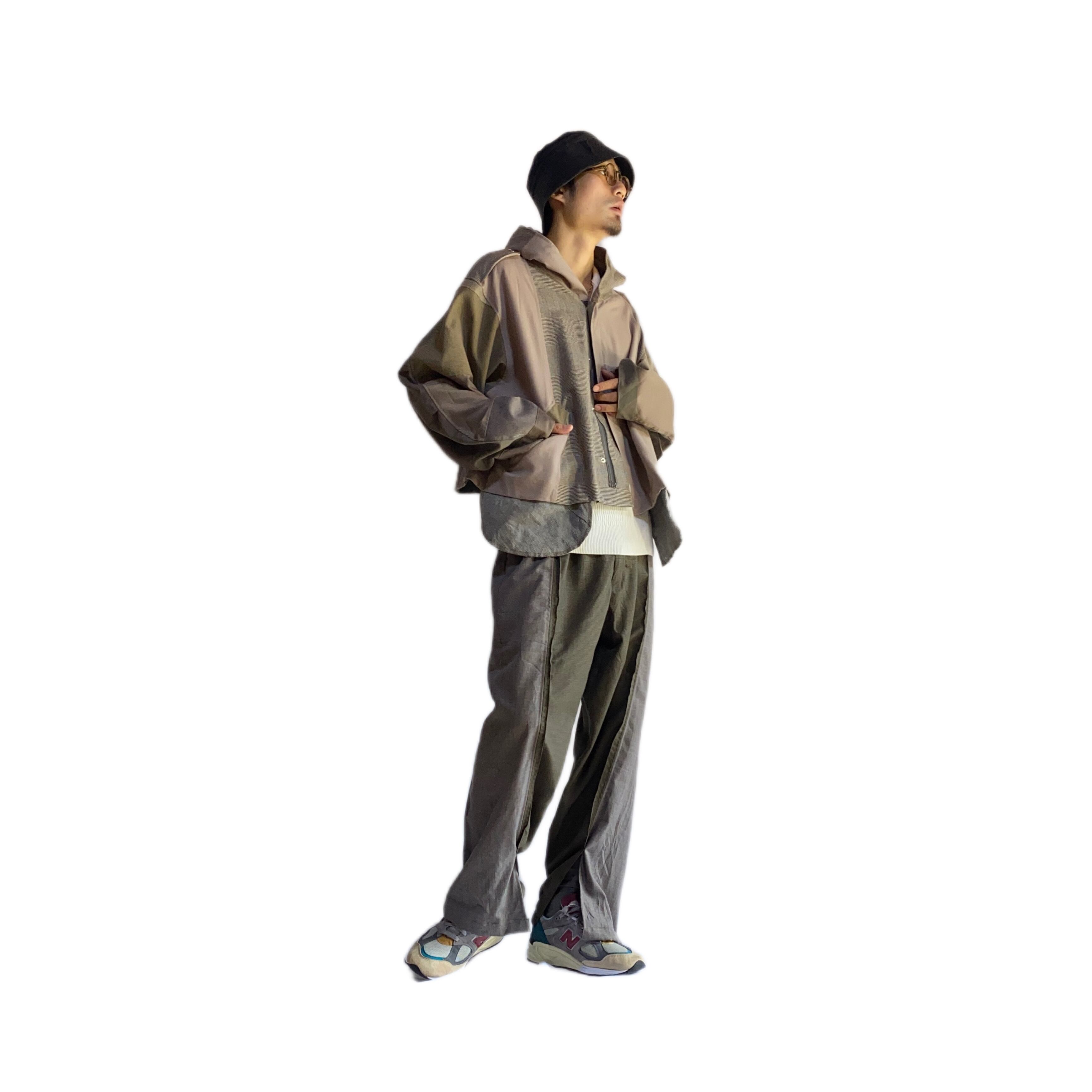 (本品は古い素材に洗いをかけて製作。経年変化は、服の魅力の一部として仕立てています。)
