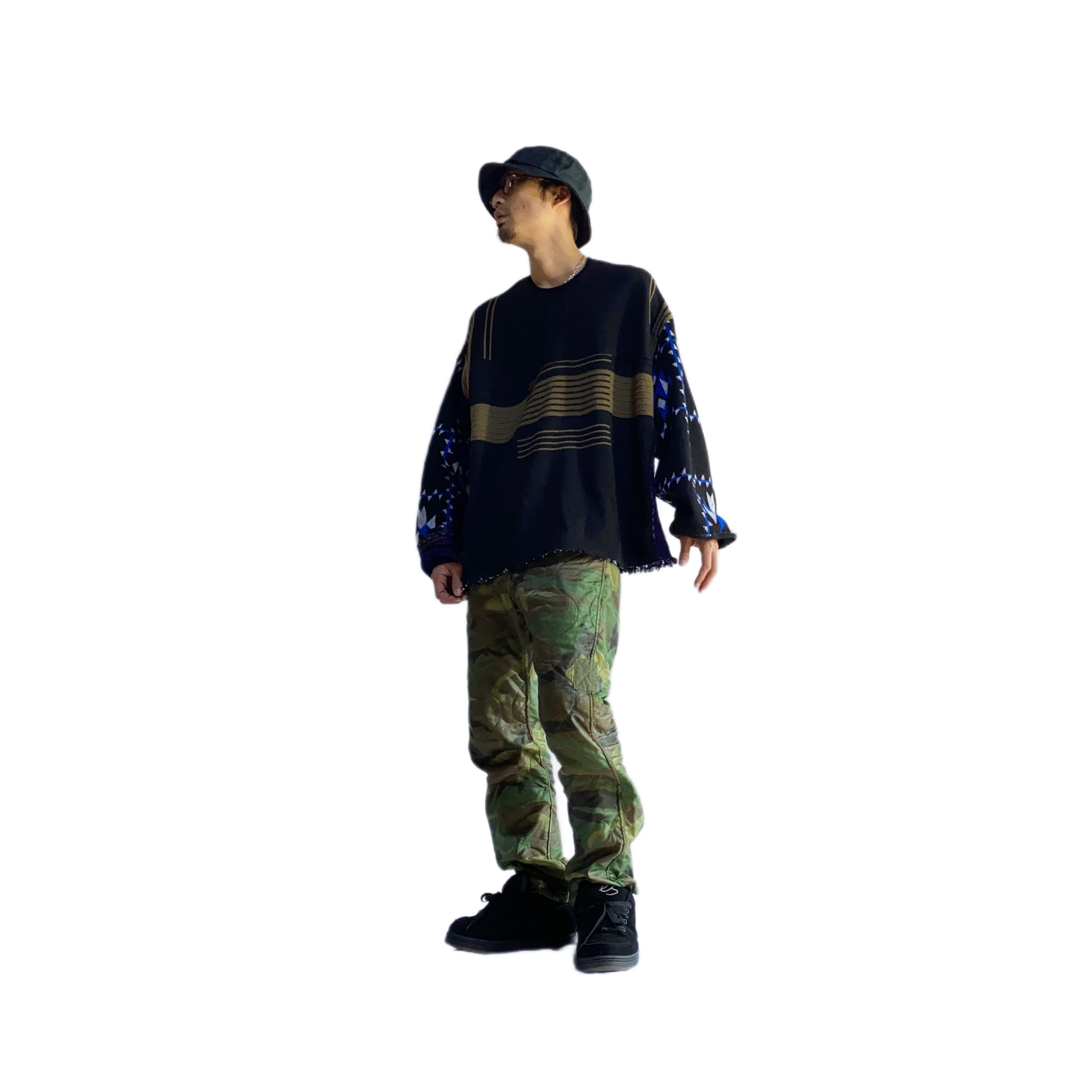 (本品は古い素材に洗いをかけて製作。経年変化は、服の魅力の一部として仕立てています。)