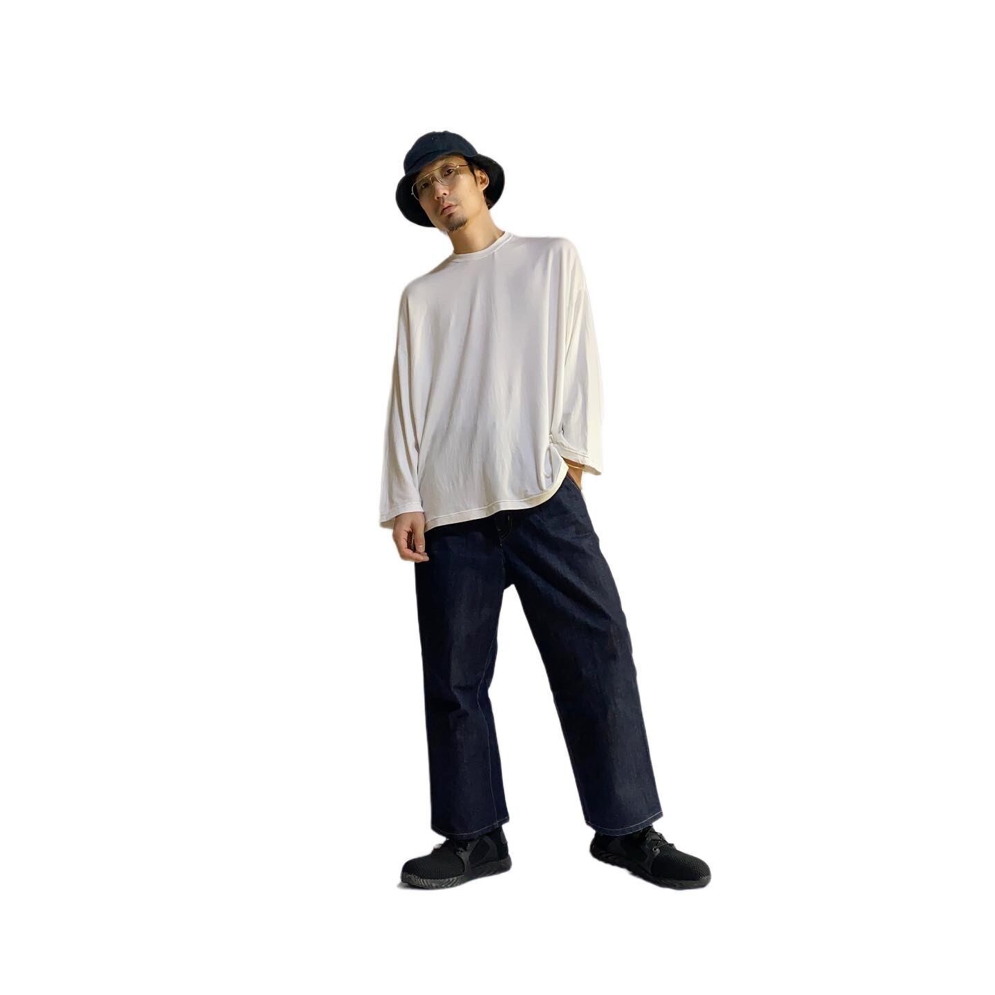 (本品は古い素材に洗いをかけて製作。経年変化は、服の魅力の一部として仕立てています。)