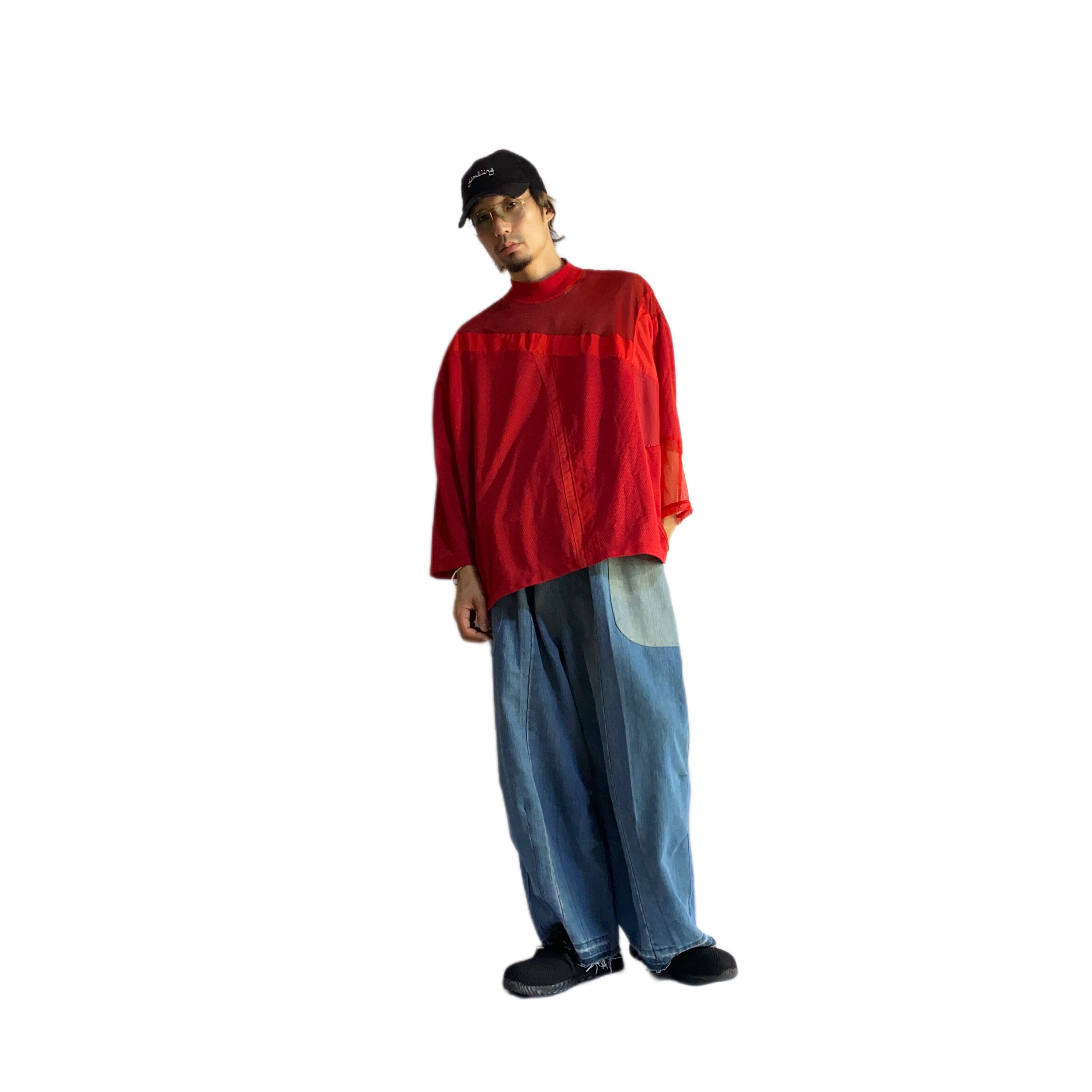 (本品は古い素材に洗いをかけて製作。経年変化は、服の魅力の一部として仕立てています。)