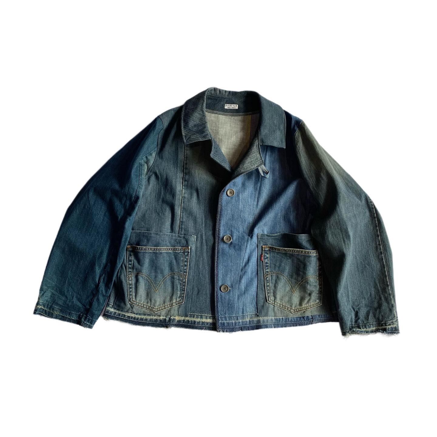 (本品は古い素材に洗いをかけて製作。経年変化は、服の魅力の一部として仕立てています。)