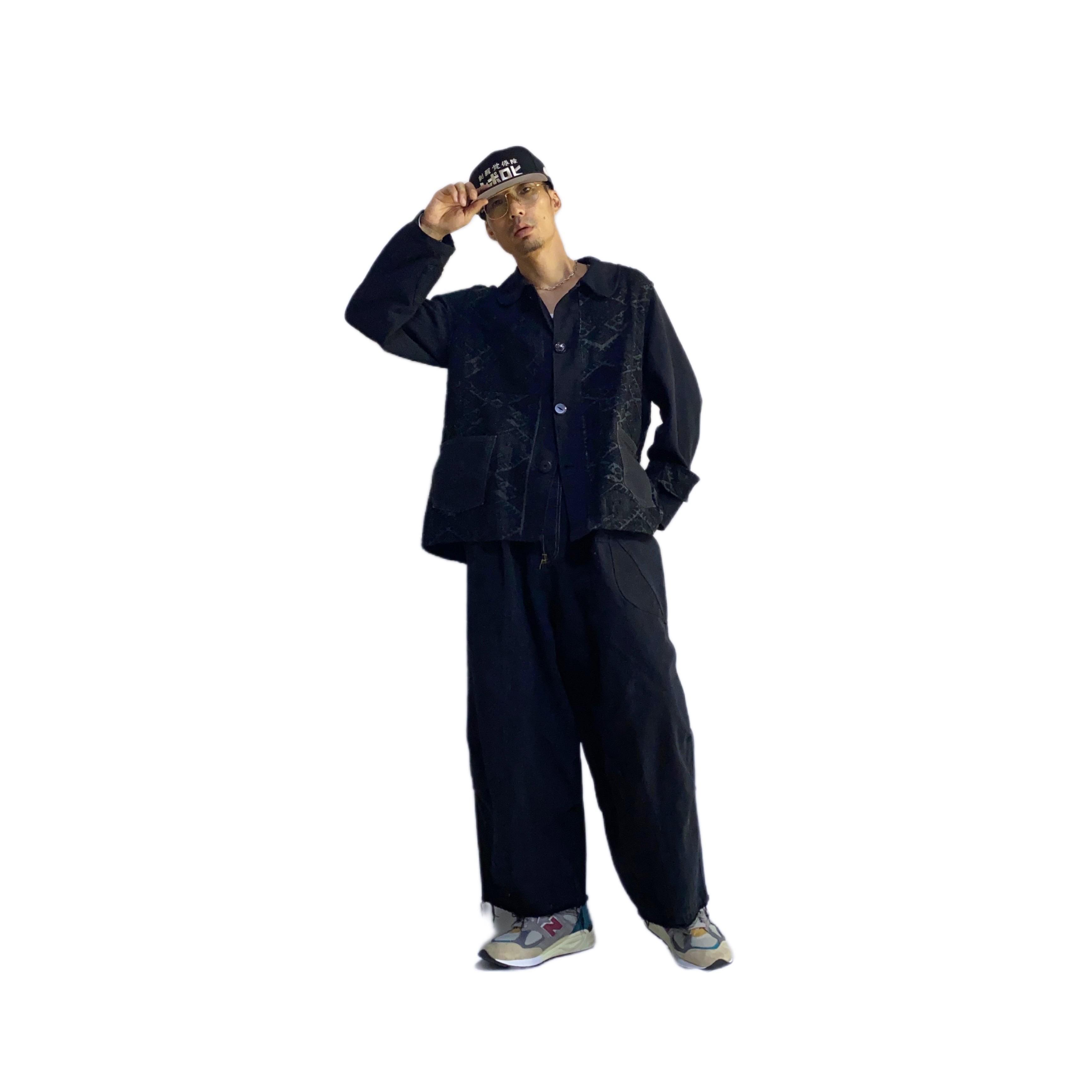 (本品は古い素材に洗いをかけて製作。経年変化は、服の魅力の一部として仕立てています。)