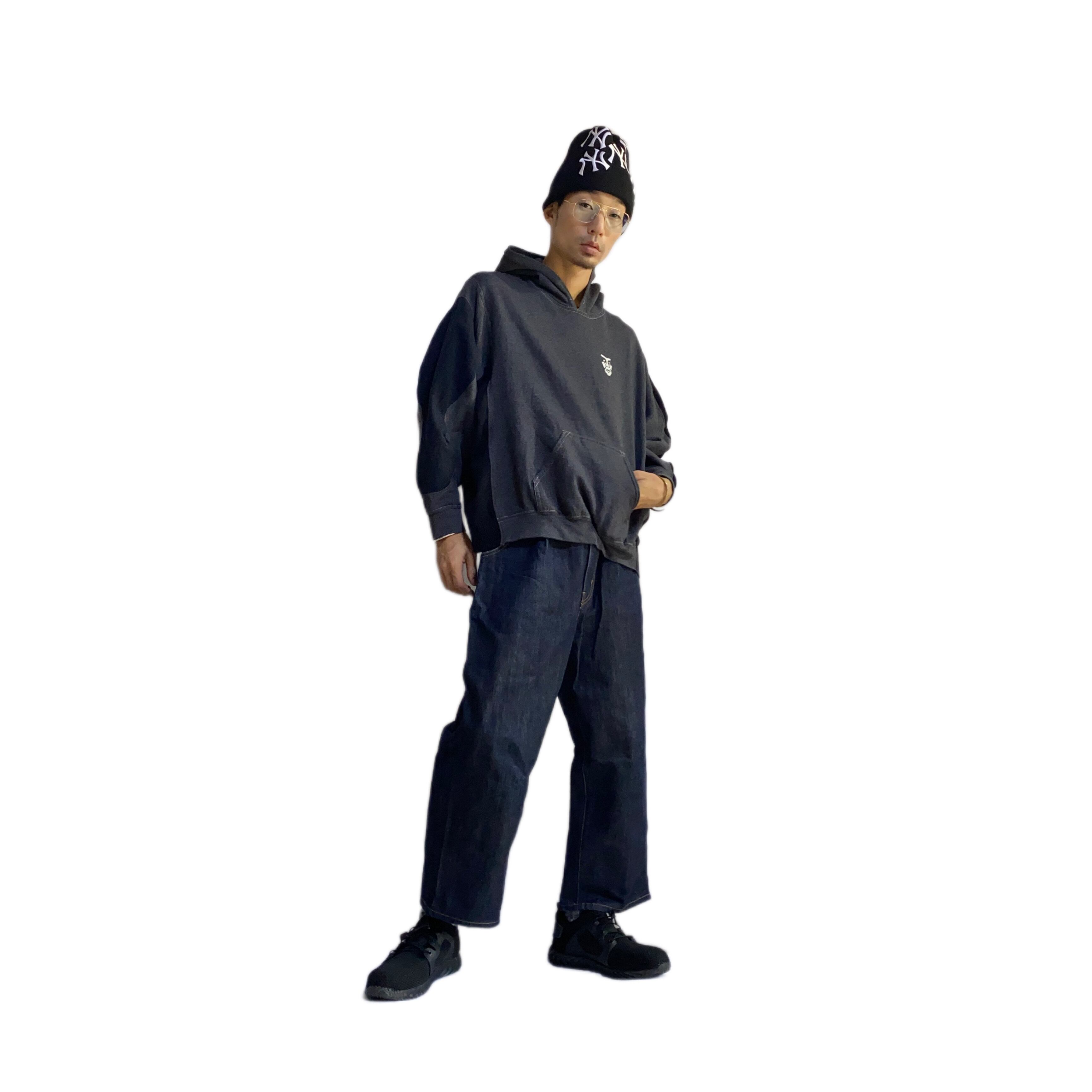 (本品は古い素材に洗いをかけて製作。経年変化は、服の魅力の一部として仕立てています。)