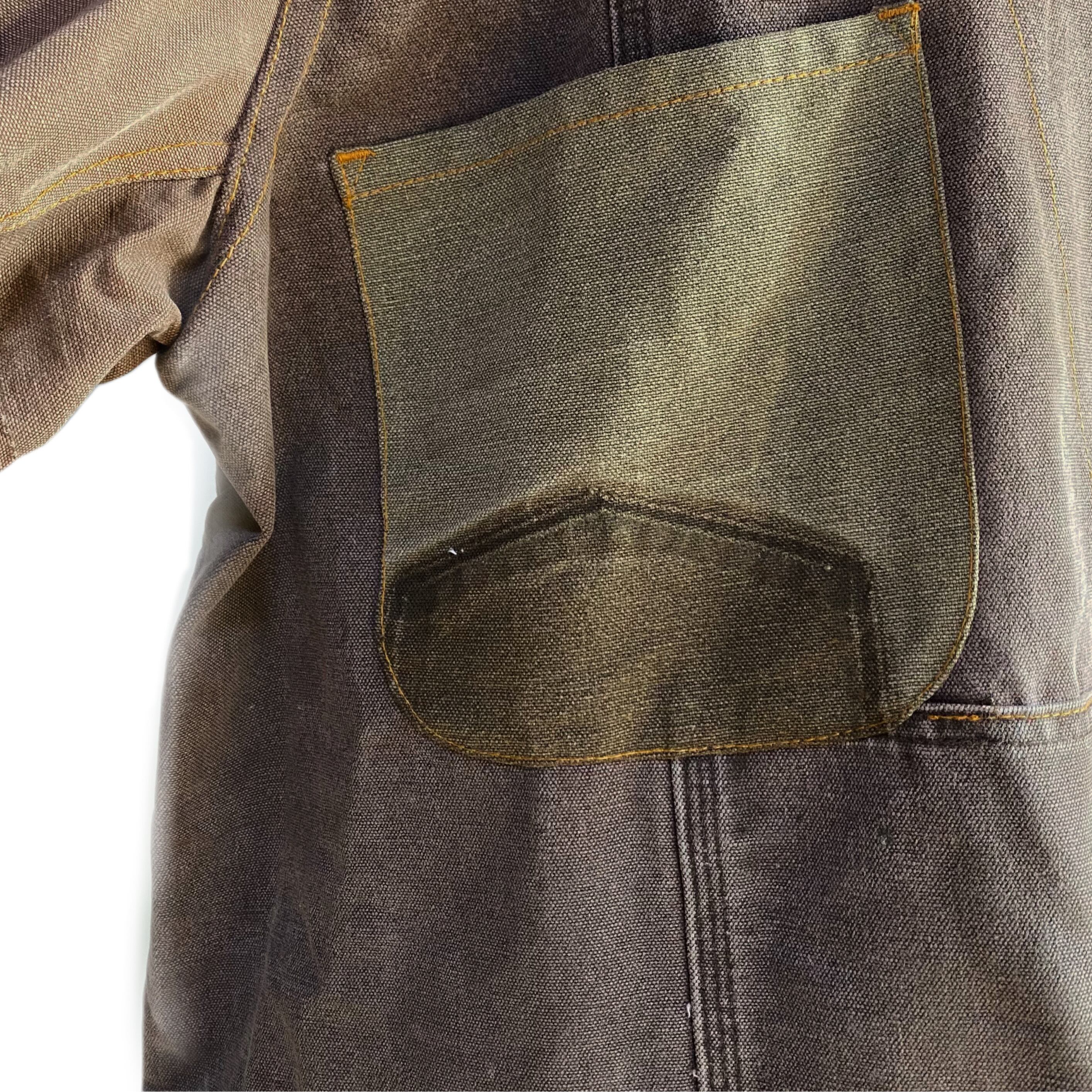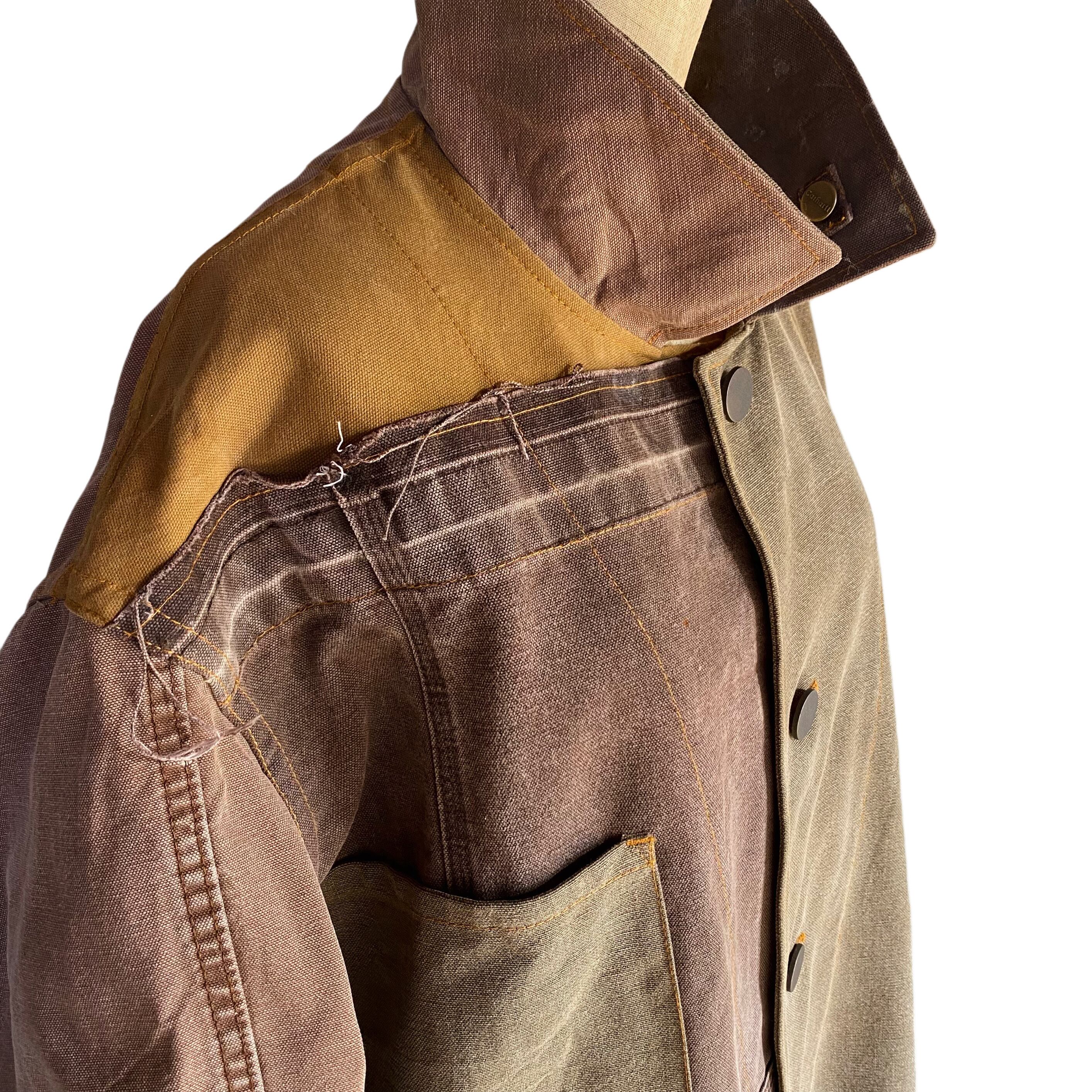 (本品は古い素材に洗いをかけて製作。経年変化は、服の魅力の一部として仕立てています。)