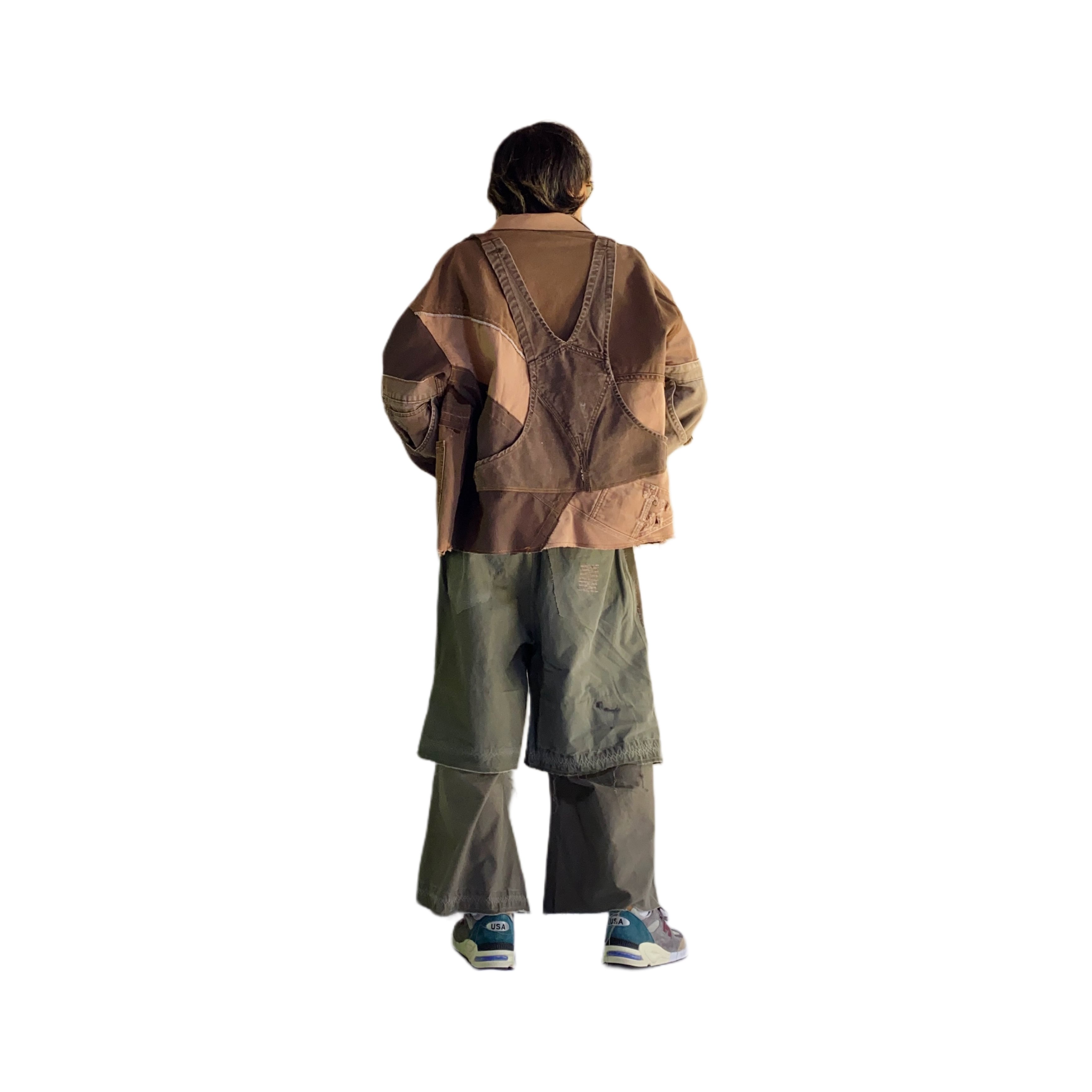 (本品は古い素材に洗いをかけて製作。経年変化は、服の魅力の一部として仕立てています。)