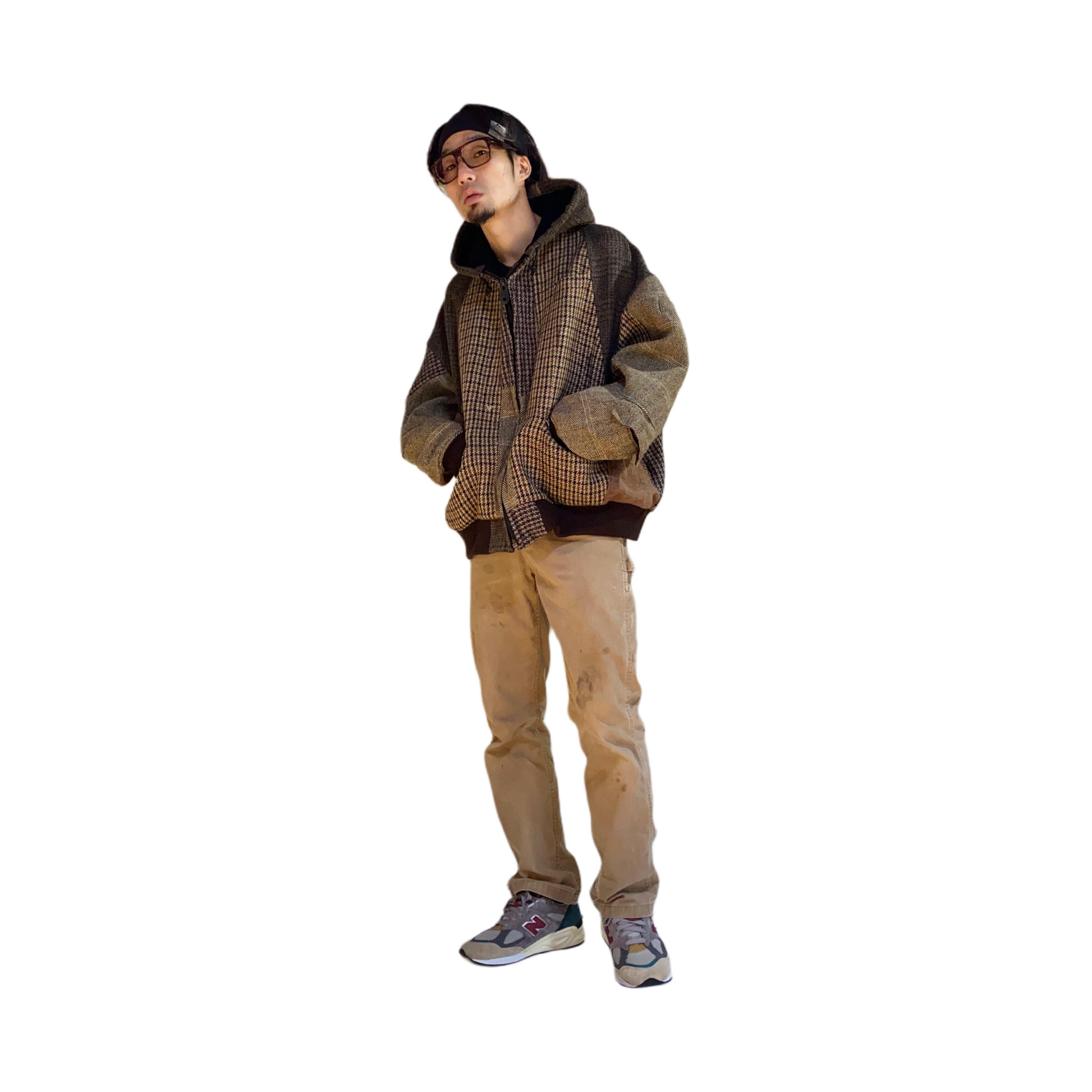 (本品は古い素材に洗いをかけて製作。経年変化は、服の魅力の一部として仕立てています。)