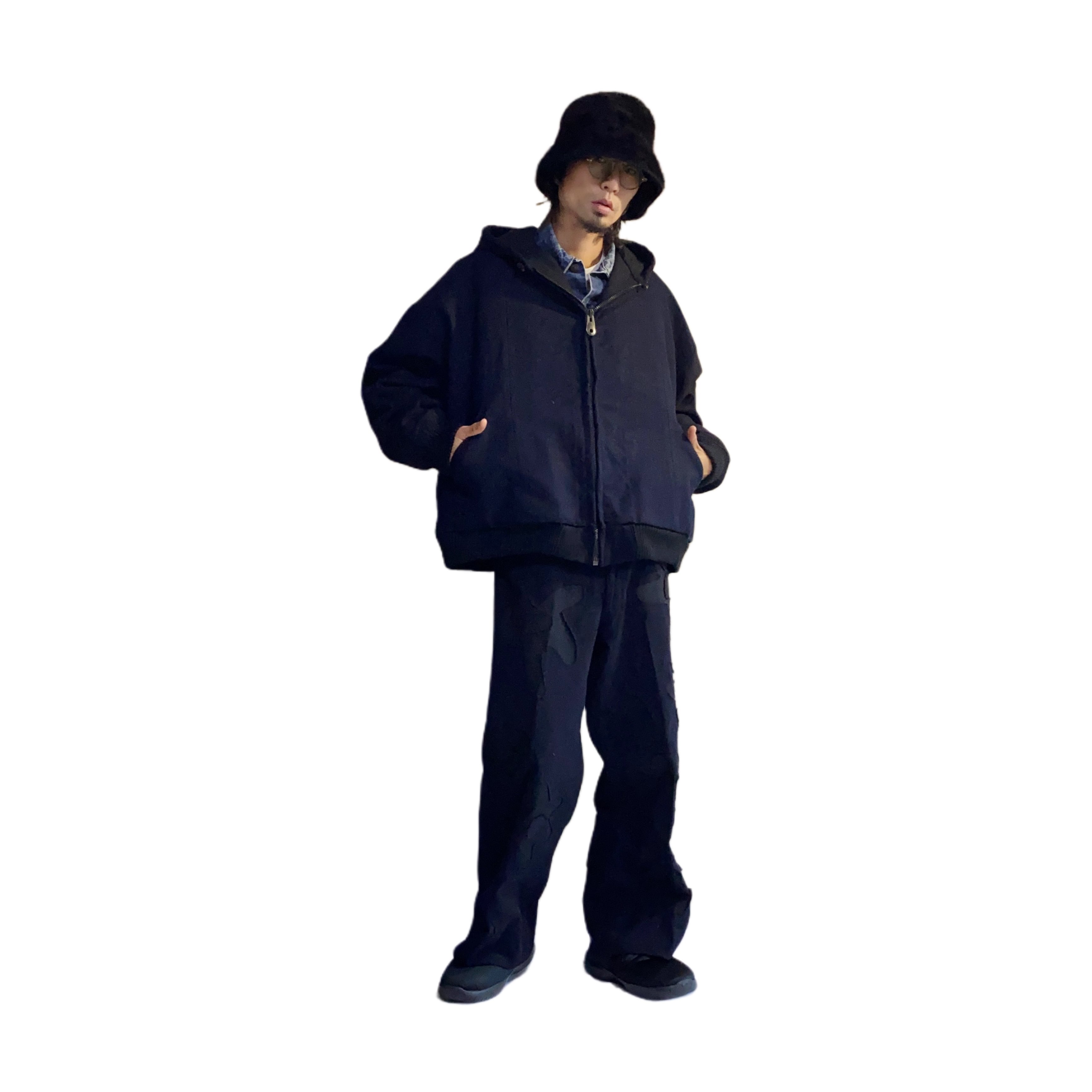 (本品は古い素材に洗いをかけて製作。経年変化は、服の魅力の一部として仕立てています。)
